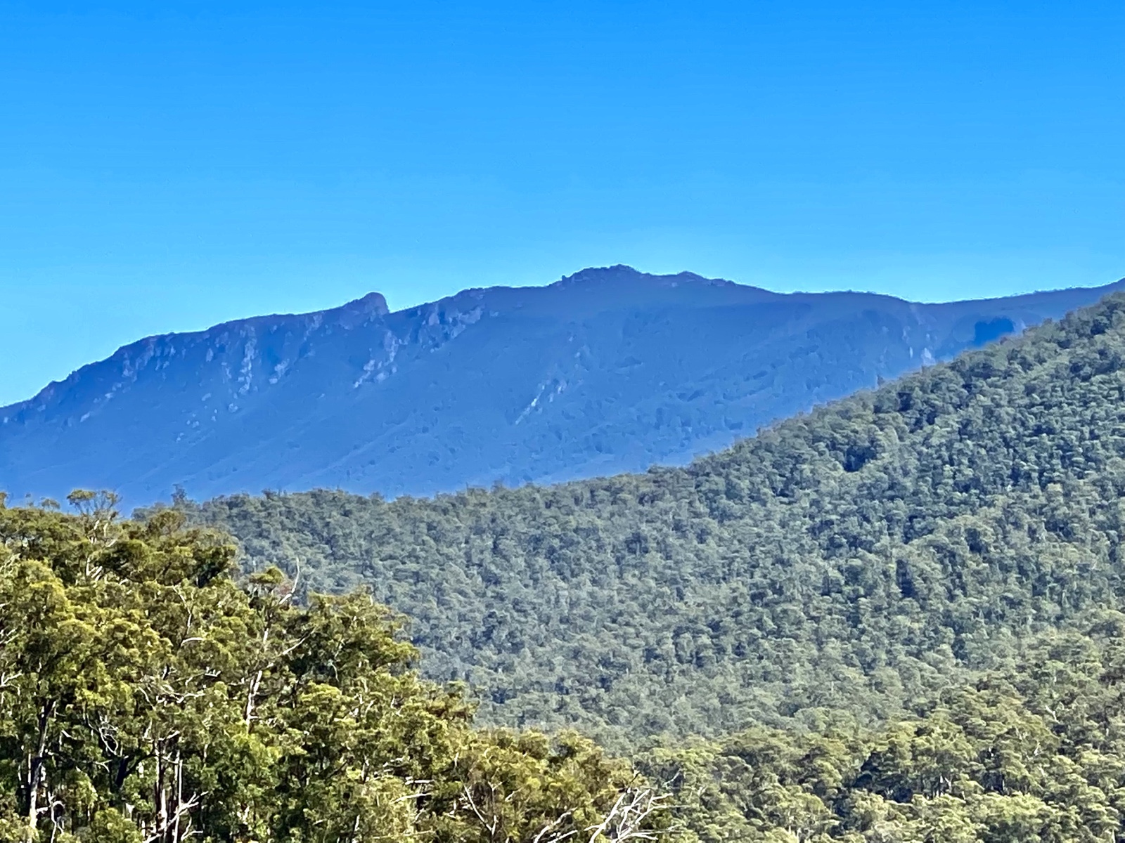 To the south, far beyond the bay is a blue silhouette, Mt Strezlecki is a jagged saw tooth of s mountain, it hovers over an ocean, it’s slope’s features made anonymous and indistinguishable by haze and distance. Oceans need the intimacy of proximity to be best appreciated while mountains stand impressive however distant.