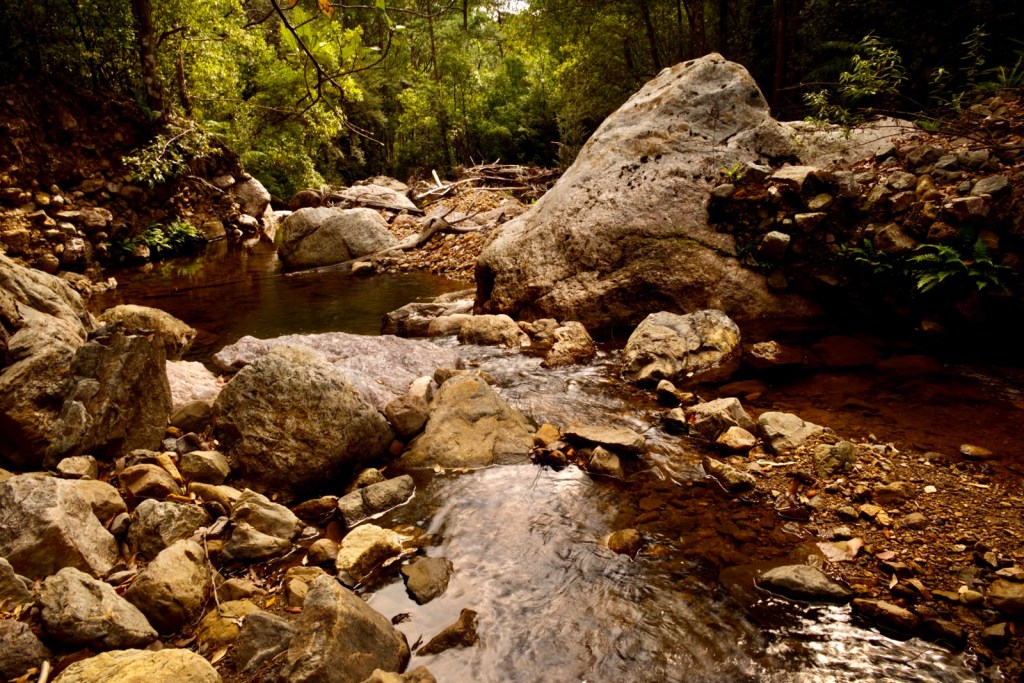Looking closely at the boulders, there is the frequent glint of mica. These silvery fragments are crystals and sit accompanied by other minerals such as feldspar. The slow cooling of granite deep inside the earth, beneath insulating layers and layers of sedimentary rock not only allows crystals to from, but as the cooling continues, great vertical lines of fragility form in the monolith; tiny, long splits run up and down creating potential columns. This occurs due to the contraction of any hot, expanded material that occurs with cooling, except for water. And it is water, wedging itself in these cracks, that freezes and expands splitting these rocks into vertical columns.
