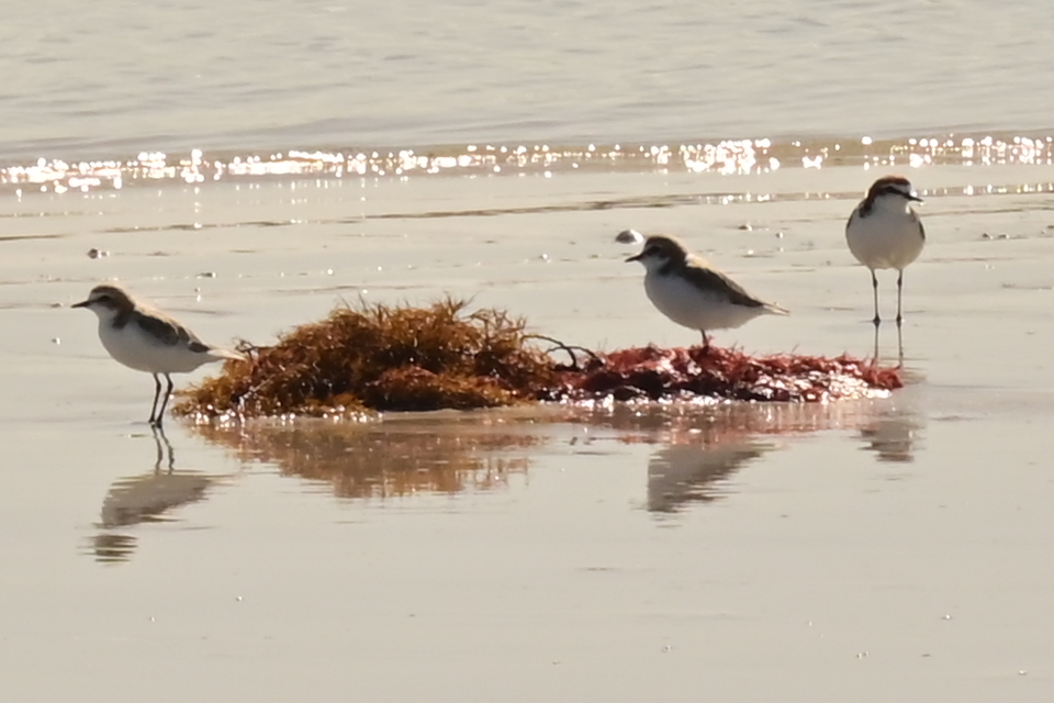 On the water, it became clear immediately that the tide was moving quickly, and we were paddling against it. Progress in the kayaks was slow and hard won. As we reached a wide shallow area with the depth barely greater than the rudder, the speed of the tides flow increased. There was long beach to our left. A vast intertidal zone was free of water and many birds were taking advantage of the opportunity to hunt for food. There were many swans between us and the estuary. Gulls, ducks, native hens, wading birds, and cormorants crowded the mud and shallow water in huge numbers.