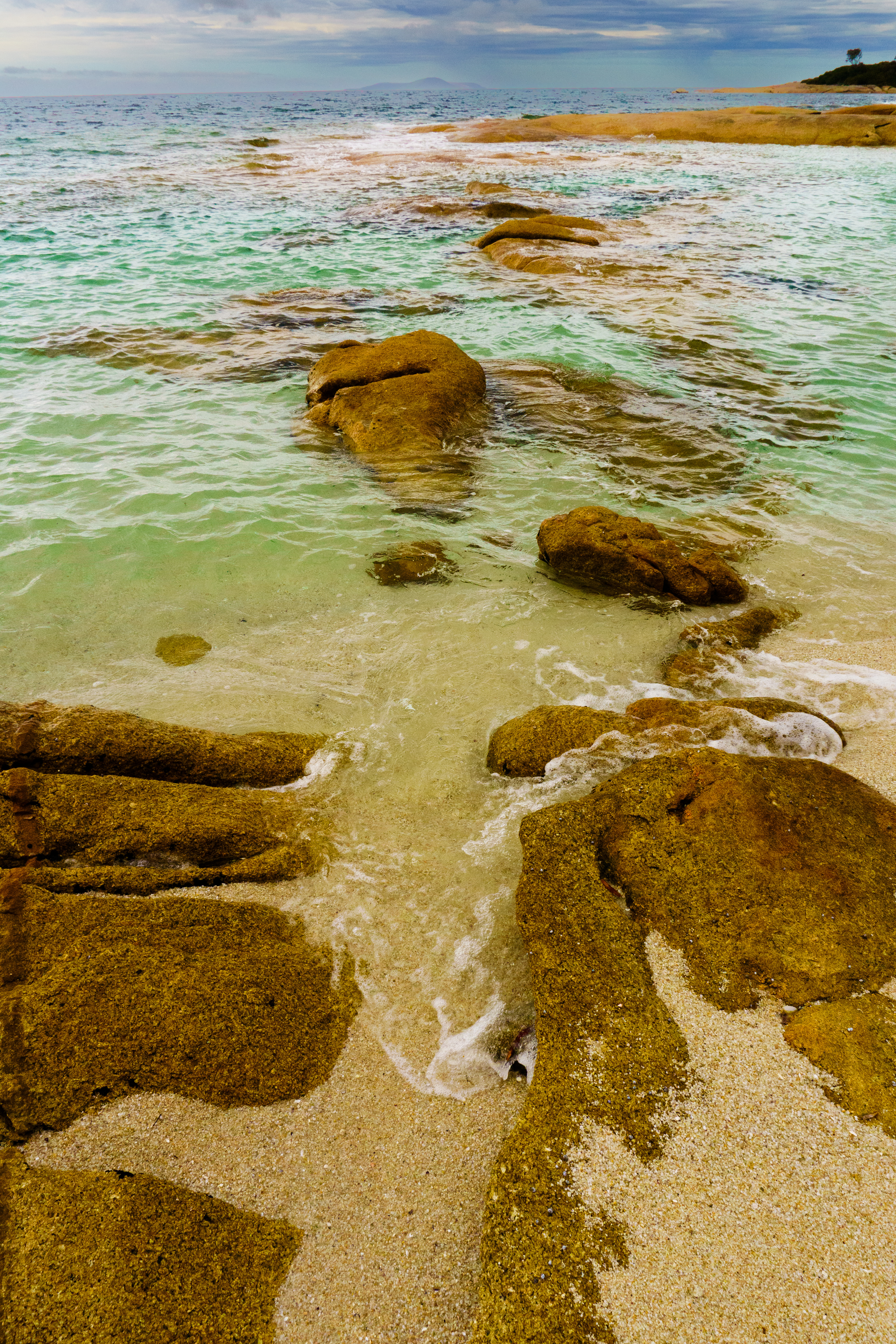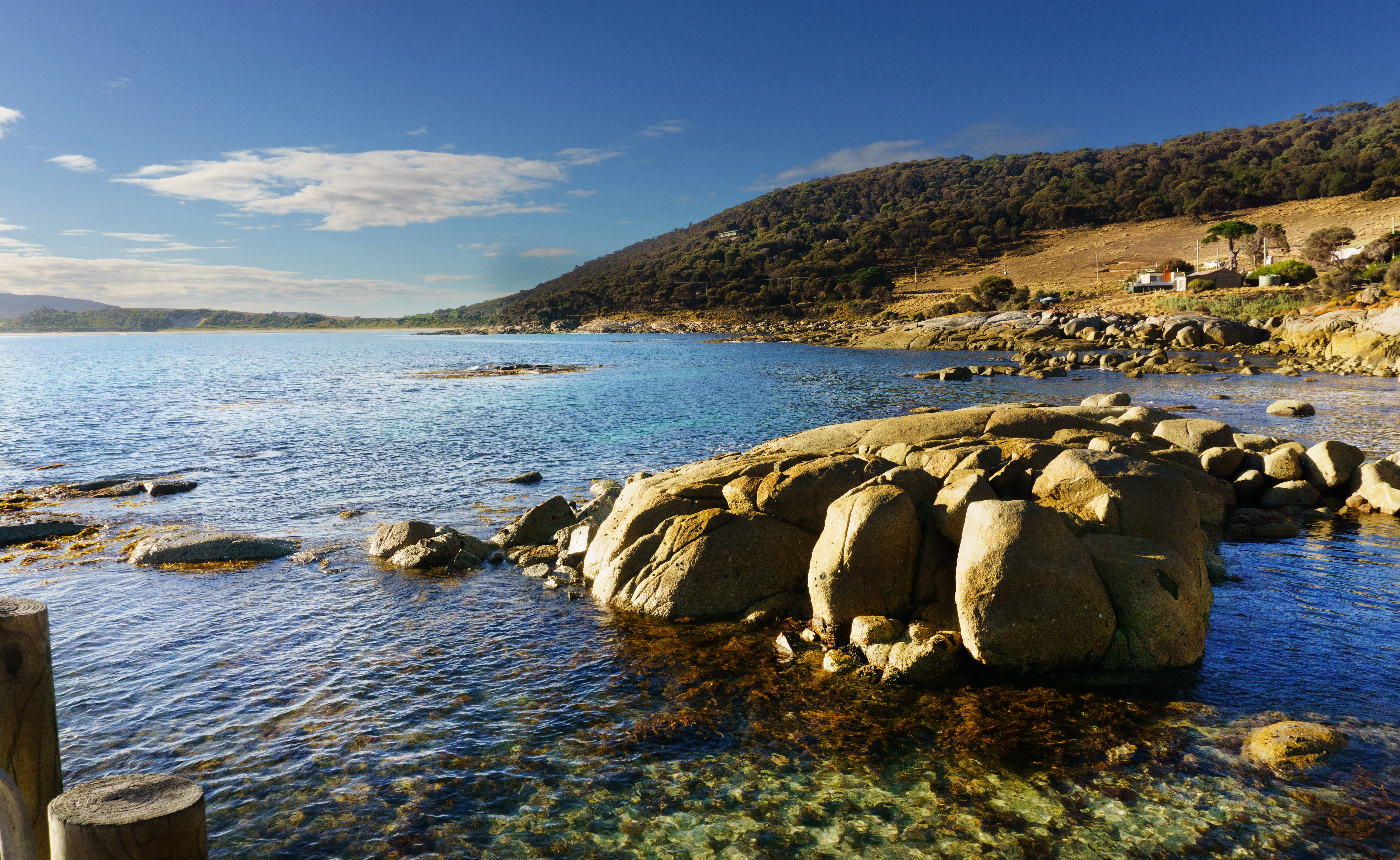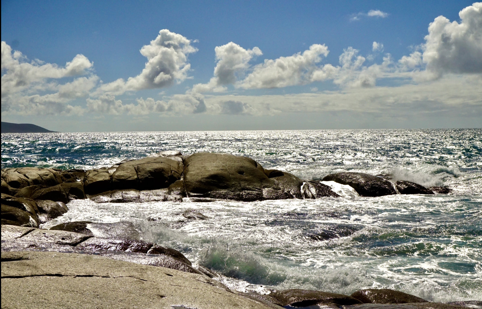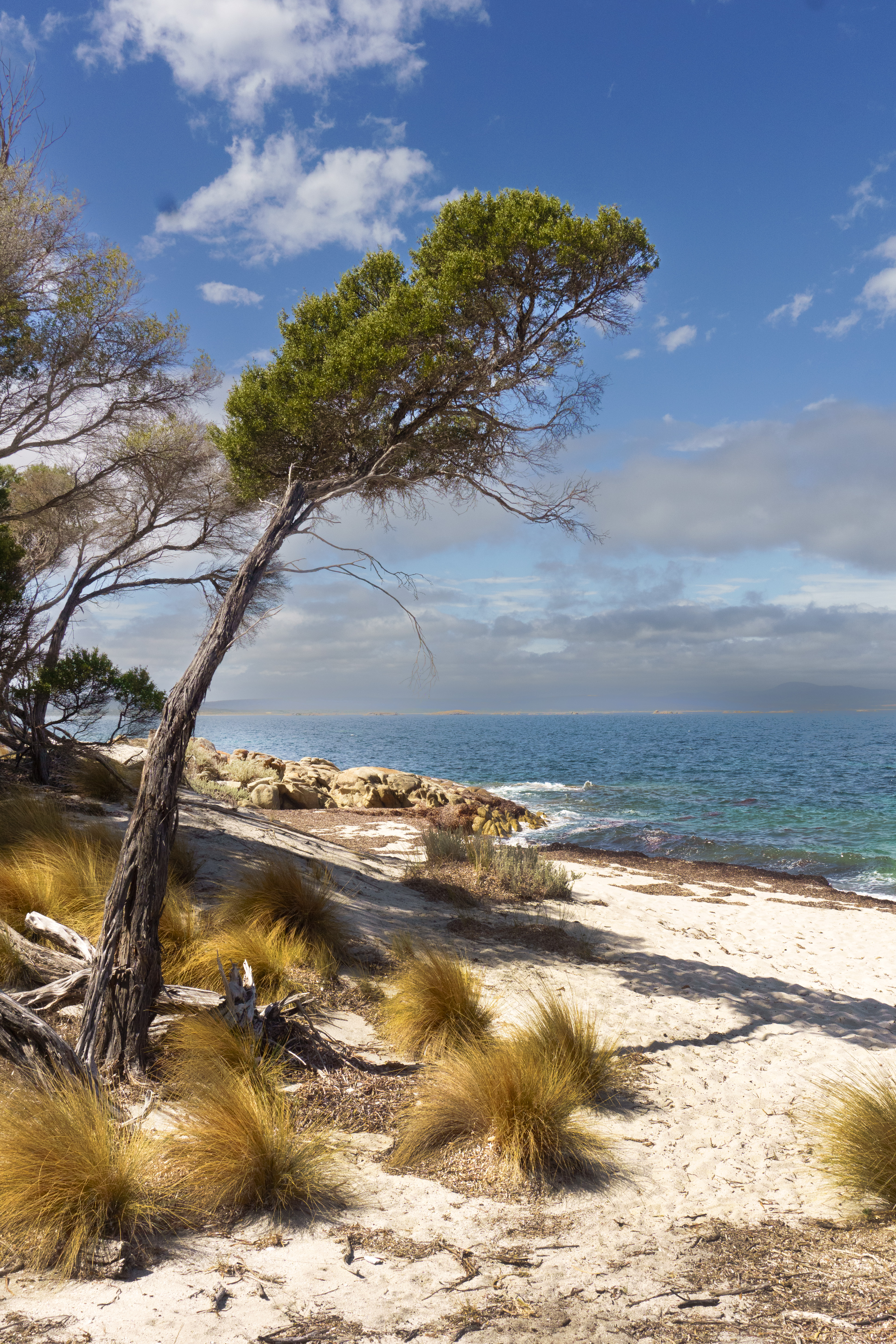 Another warm and sunny day, a few clouds blown listlessly over the horizon. We went in the bus to Allport’s Beach. A typical Flinders Island beach with sand curving across the bay, and boulders resting together at one end, adjacent to where we launched the kayaks. The water was calm, almost still, until broken by the rhythmic attack and draw back of each blade. As the blade propels, passing beside the hull, it creates a whoosh and thrum in the water. With each stroke, I can both hear, and feel this resonance in the kayaks shell.