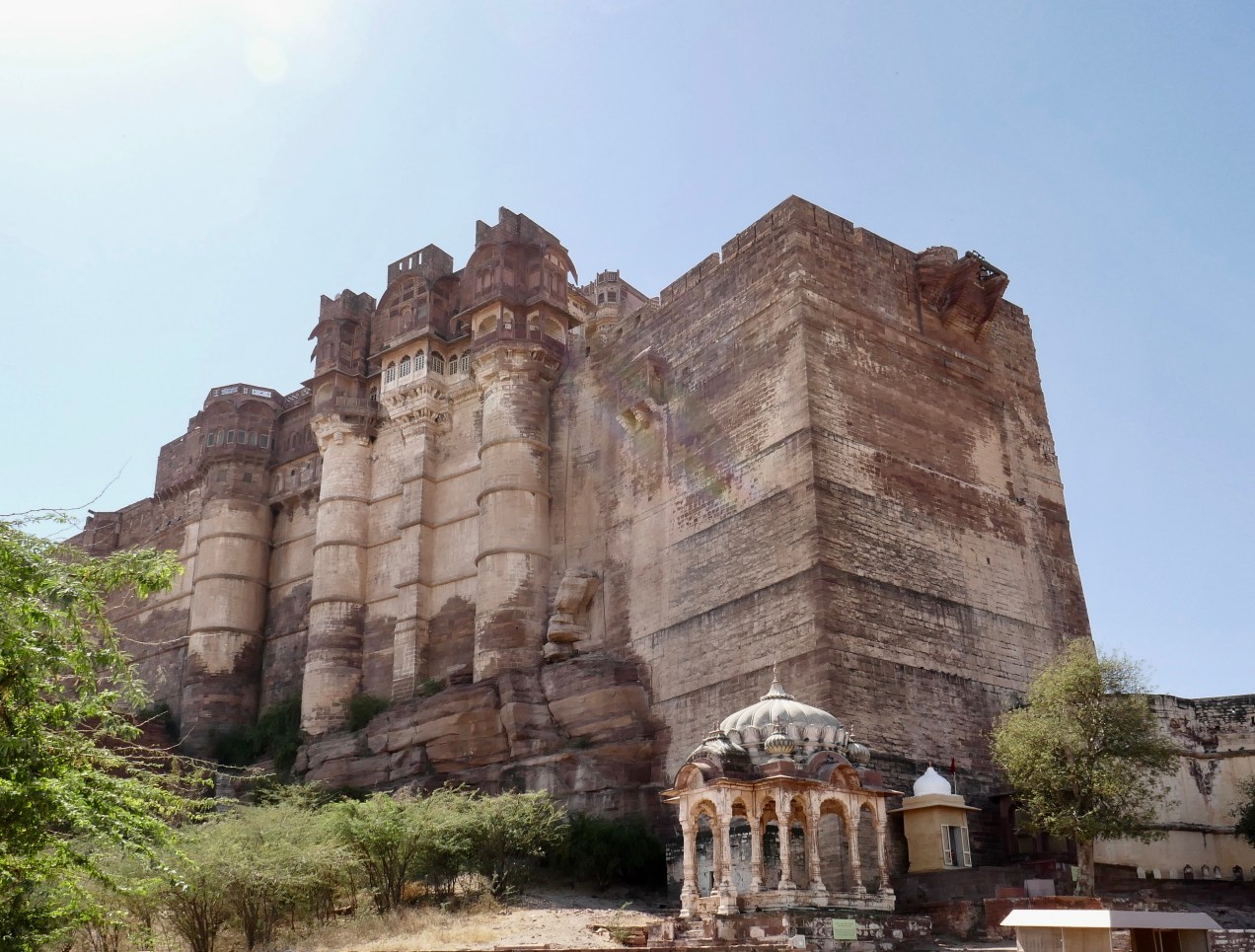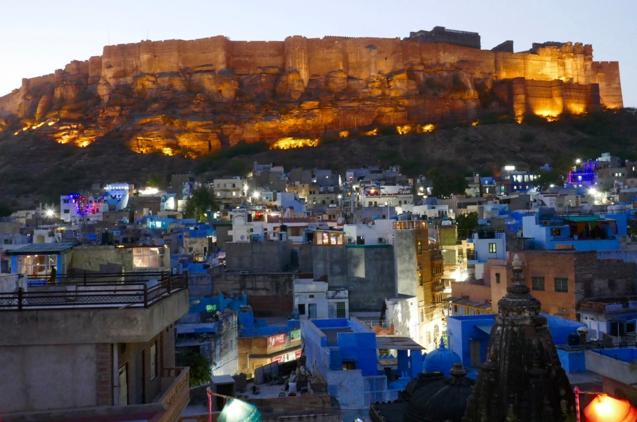 Jennifer and I are sitting in chairs at the rooftop bar at Deepak Hotel. We are in room 10, and it’s a sharp climb on the stairs to the dining rooftop area. We have just ordered a pot of Marsala Chai. Today is a free day, to do as we wish. After breakfast, we spent the next two hours just walking around the fort and township adjacent to the fort. The streets were built according to a narrow template, to frustrate invaders but particularly to provide more shade in the summer and abate the awful winds. We climbed to some high points today and indeed the wind is very strong out of the protection of the buildings.