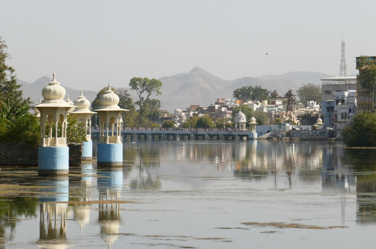 We hired a guide who spoke with a thick accent, and I missed a lot of what he said but he did show us through the labyrinth of the castle interiors and exteriors. The highlights were the hall of silver mirrors – this area was used in winter as its design promoted heat retention, while on the other side were rooms with multiple cement screens along which water splashed down, cooling the rooms in summer. We saw wonderful views of the surrounding countryside and hills, as well as the imposing Fort Jaigarh, this older, less salubrious building sits above the more luxurious Amber fort and which was a place of refuge if the lower fort should fail. We visited the temple of the Maharajah. You are not permitted to take photos so a description will have to suffice. The room is white, the interior light diminished, every white surface, the fluted, tapering pillars and the walls are embossed with a white flower, a repeating design. On one wall is a painting of Shiva and the other Lakshmi. The alter is behind another wall. Either side of it’s entrance, on the wall, are massive sculpted green leaves, and a bunch of bananas on both right and left side, on the low table in front of the idol, are large silver pieces, one of a large rearing horse. The idol has a tiny head, with a red cloth from neck to floor obscuring any body or limbs, and around the neck a front are garland after garland of flowers, yellow, white and orange. A spectacle of veneration and vivacity.