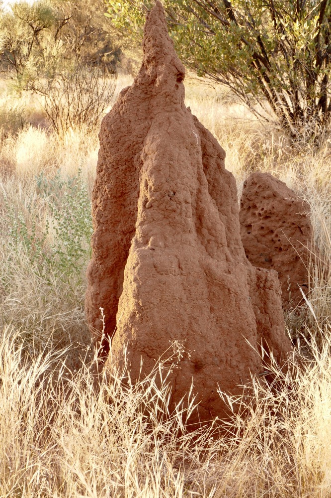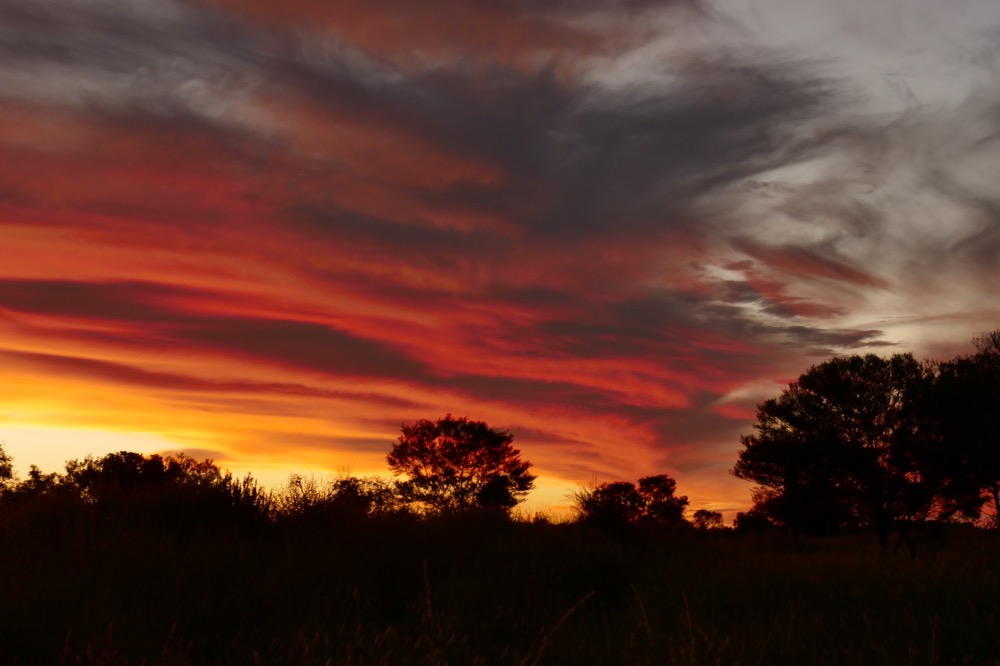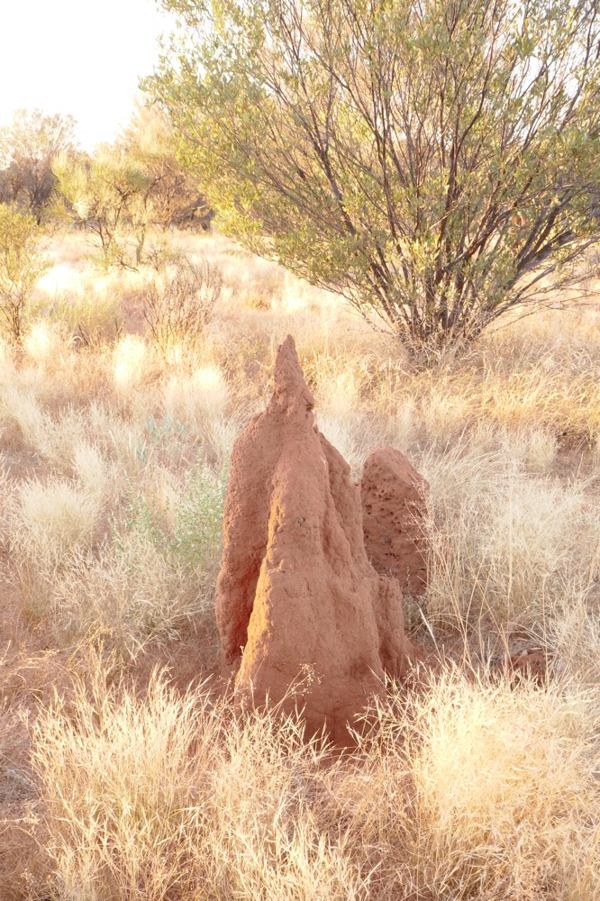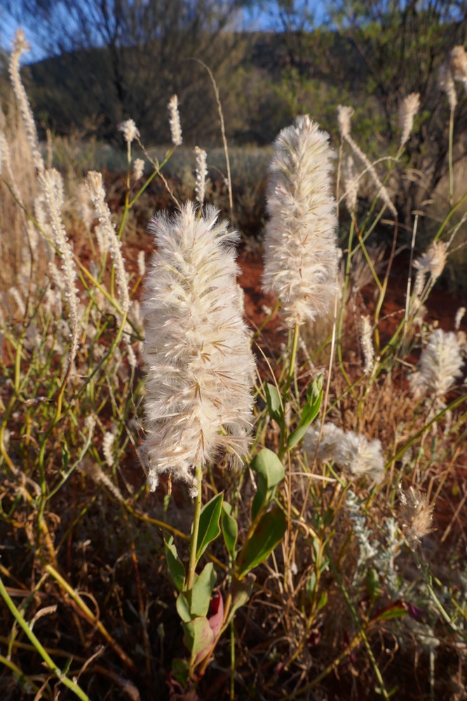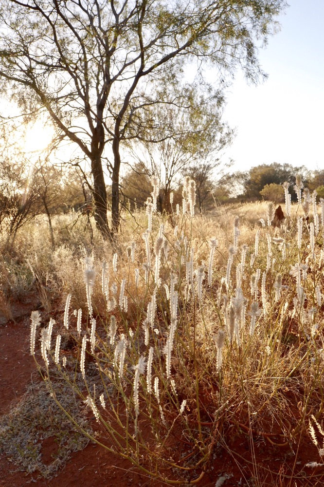 Much of the native grass is gone due the CSIRO releasing buffel grass in the 70s. This South African grass was planted around Alice Springs Airport to reduce the airborne dust that was damaging Ansett’s jet engines. This was the beginning of the boom in tourism and nothing can be allowed to interfere with its profitability. The fine dust is as corrosive to engines as to everything else. The result has been that this grass is displacing native grasses all over central Australia. It grows back quicker after fire than natives, including grasses, palms and saplings, choking them. When it burns, it burns so hot, that native seeds are destroyed rather than being germinated by lower temperatures. And it’s tough and very hard to pull out off the ground, you need a matic to remove the roots. It looks nice enough but it’s replacing the diversity of grasslands and increasingly forests with a single plant. Kangaroos and other marsupials don’t like it and graze elsewhere. Bush tomatos, bush passionfruit, and other plants cannot grow. This means that bush tucker is not available in many parts of central Australia. This worsens the nutrition and damages the hunting culture of Aborigines. Graziers and government are not all that interested in solving this problem as cattle do like it and eat it and it has made grazing more secure a practice and as a business.