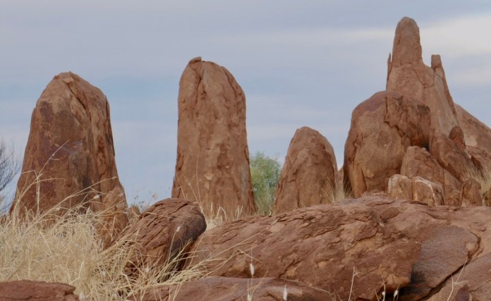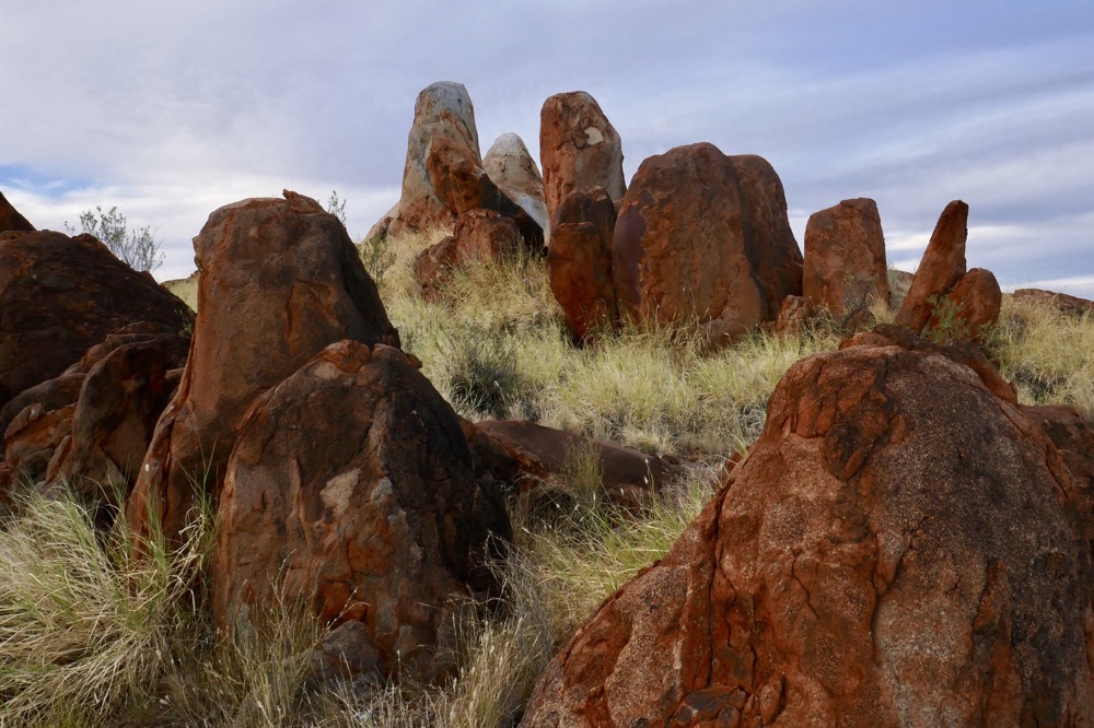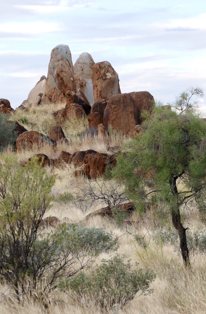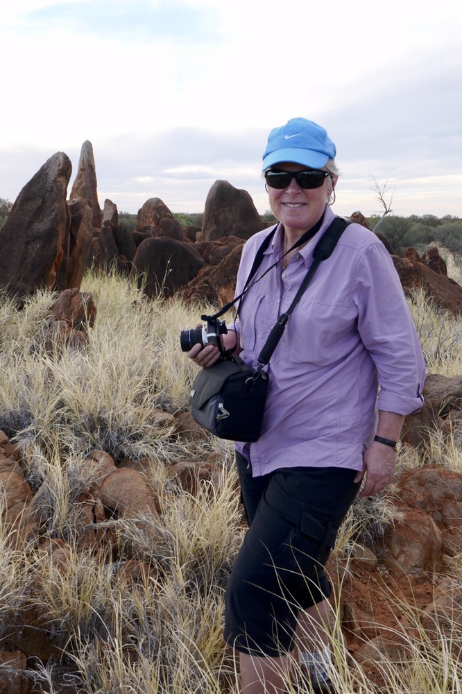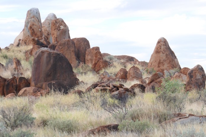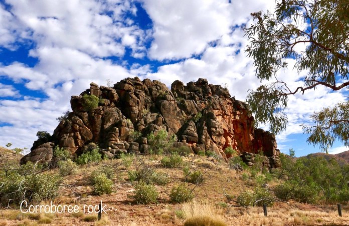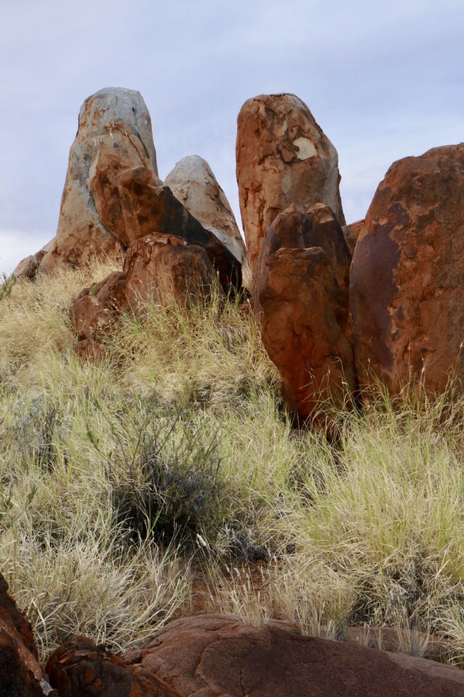It was then only a short trip to the rocks, I think he called them Juts Juta. They are the place of the water dreaming. The place to make rain. It’s also a terrific place for camping out, the eerie red rock formations creating a magical backdrop. This is where the youth group is going to stay this evening.The rock formations seem to erupt out of the irregular grassland and amongst the scattered trees. A very beautiful sight. We walked a path of our own , nearer and nearer, threading a cautious path between rocks and rare patches of flat ground and all the time looking out for snakes. Every new vantage point offered even more fascinating views. What a great privilege it is for us too see this sacred place. Near this place, under the stars they have corroboree, staying here for a few nights; celebrating this beautiful land and sharing their stories.