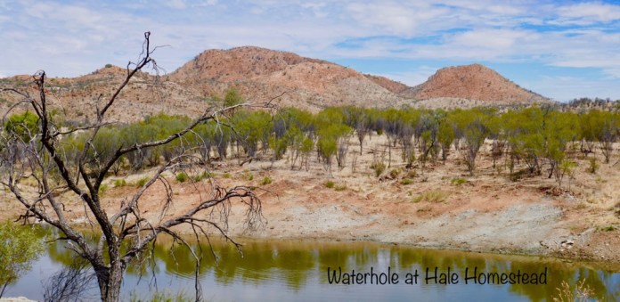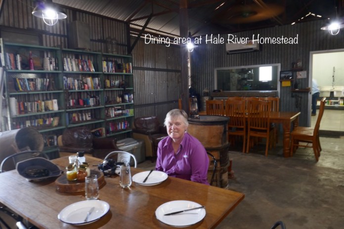 We drove a a short distance to Hale River Homestead ( also called Ambalindum Station). This is a business venture of a mother and daughter. They bought or leased sixty hectares of land from the main station for a tourist venture about 18 months ago. They have revamped the old buildings to new purposes. The battery room becomes a charming bed sit. The old homestead becomes multi room accommodation, its interior designs and furnishings reflecting the 1950s when it was last renovated. The dining area is an old tractor and mechanicals shed, with a lot of the paraphernalia of outback life on display. We had a terrific yummy lunch with home made pickles and chilles on corned ham rolls. Sophie, the young manager and part owner, not only joined us for lunch but showed us around her property. It’s wonderful to see and hear a young local woman, raised in the outback, with such determination and capacity for hard work. Over lunch, we talked about life in the outback. I saw a black goanna, a little one, on the concrete path to the dining room. Sophie and Mark told us some stories. Marks wife and co owner of their business, is a veterinarian. She was called to see two injured horses with damaged calves. The calves had been torn away by something. The first thought was dogs but when it happened again, she attached cameras to the horses. These cameras did not show dogs but a goanna, a Perentie which was about two meters high when standing and trying to kill the horses. Perenties are venomous, agile hunters, the fourth largest lizard in the world and will take on anything. Once the station owner knew what to look for, they located the lizard and captured it and relocated it. Well that what they told Marks wife. Mark remains sceptical about the fate of the animal.
