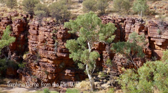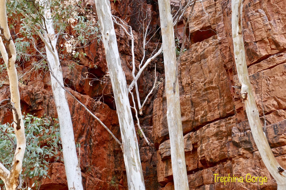 After leaving the homestead with Mark at the wheel, we drove to Trephina Gorge. We took the Rim walk, which went steeply up and above the gorge, offering wonderful views of the rock face opposite us. We descended sharply at the western end, to enter the gorge itself. There is hardly any water here to see, but just like Emily Gap, the river is still flowing, its just moving under and not over the sand. The ghost and river gums sending down huge, long roots to tap into this near permanent flow. You may have heard of two German tourists who died at Trephina in February. The story goes something like this. The married, elderly but fit for their age couple arrived at Alice Springs Airport and collected a rental car. They were booked into some very exclusive accomodation for that evening. They drove to the gorge, parked their rental vehicle and went on one of the many signposted walks. Most likely the Rim Walk. After about 1 kilometre they turned off the three kilometre track onto a 18 kilometre return track. I saw the spot and even I had to ask Mark, which was the right way. They carried on this longer walk, got badly confused about direction. Their hotel manager was concerned when they did not show up and he called the police. No one had a clue where they were going. A ranger found the car three days later at Trephina Gorge, and two days later searchers found the first body, and the next day, the second body was located. What mistakes did they make? In short, plenty. The only water they each had were those 250ml bottles you get for free on the plane, they walked in 40 degree plus heat, they had no hats and they told no one where they were going. The map they used was a tourist guide to Alice Springs and surrounds and it was was never designed to plan walks as it was not to any sort of scale. There are excellent maps at the visitor centre at Arltunga and online. They died from dehydration after getting lost and confused, making bad decisions from start to finish.
