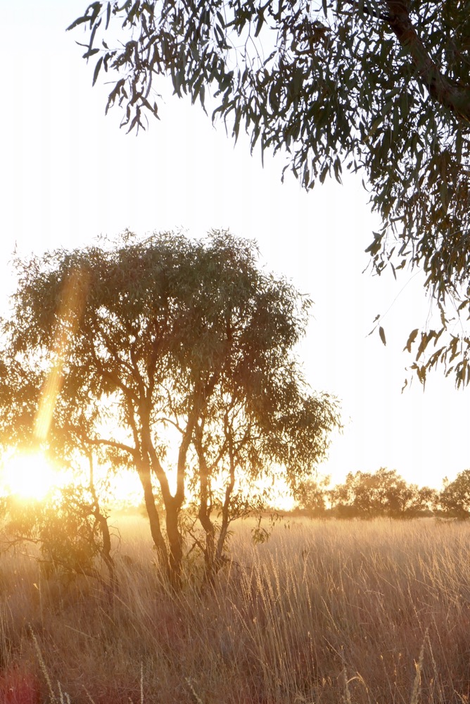 Jabison drove us back by an alternate route. This track avoids the creek crossing that provided so much exercise earlier. What a fabulous trip this turned out to be as the troopie dashed along the track, a track overgrown by metre plus high grass. The grass was lit up, almost disembodied in the brilliant light of the setting sun. The rays of light were broad beams of illumination into forest, down hills and across grassland interspersed with early night shadow.. As we drove along, Jabison told us some wonderful stories of this place. This area, a plain ringed by five low hills is full of secret places. We passed the men’s place earlier but here were many more. There is a swamp where the people can swim. This swamp has permanent water and has a great lizard, bigger than a crocodile. This great beast stays under the water as it has done for a very long time. Only one thing will cause if to attack and eat a child or adult in the water or lounging on its grassy banks. This is if someone is talking another language to the local people of Yuendumu. They themselves are always safe unless they speak another language. One day a coloured fella brought a group of children to swim and while they played in the water, he saw something big deep in the water. He warned them all to only speak in their language which was hard for him as he was not fluent in the language. No one came to any harm but he was still worried he would get blamed if some of the children got eaten. By the way, Aboriginals call themselves the people and we are the coloured people.