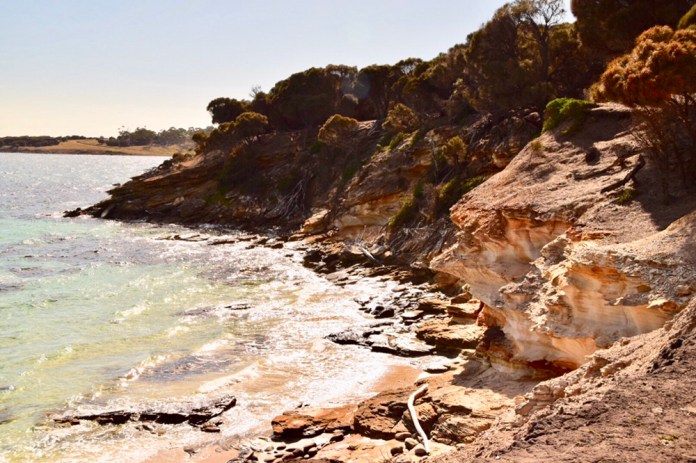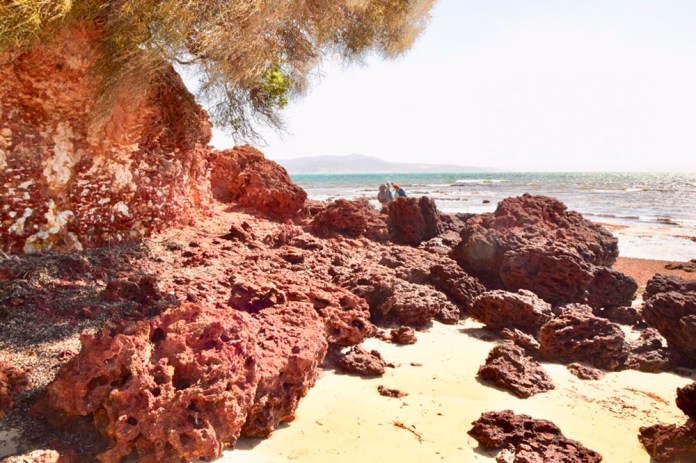 We then travelled east along La Suer point or Long Point. We joined our third beach for the day. We skirted the remnants of old whaling piers. Their timbers eroded into beautifully carved spears jutting out of and not into the sand. A large clay pit was stained by red minerals, creating impressive ochre pit. The rock is called laterite and creates a striking point of land, richly red rock climbing out of the sand beneath the shady coastal casuarinas.