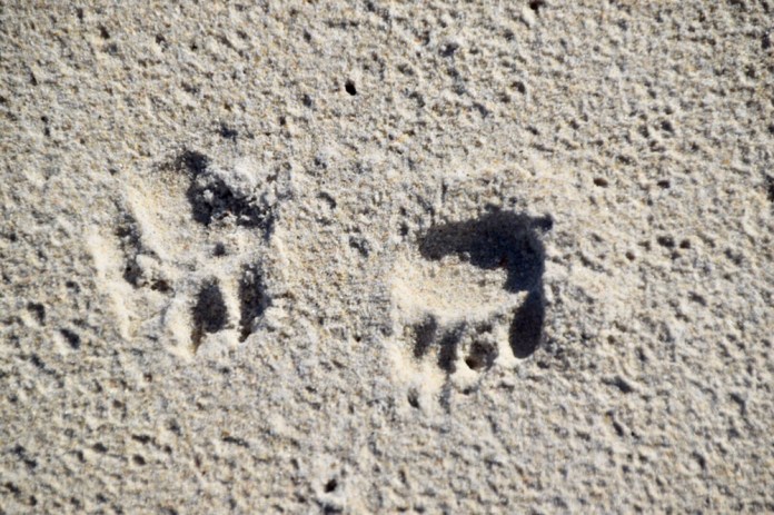 We all came across at different points, so had to assemble again and again. We crossed the isthmus but before we did. Ella pointed down to the sand and there were tracks. One step, then two footprints side by side, then one step. Pudgy little footprints typical of the Tasmanian devil. Maria Island is one major refuge for these wonderful marsupials. They cruise the beachs. I could see the track heading straight along the beach as as far as I could see.