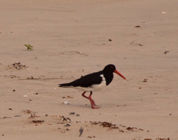 In the morning, no rush, a breakfast of cereals then an egg based hot meal with rolled salmon. Some of us decided to explore the Ocean Beach, and took our packs down and set them in the white sand. I watched with fascination the crowds of hooded plovers, these tiny white seabirds were darting around some oystercatchers who were unperturbed by their antics.