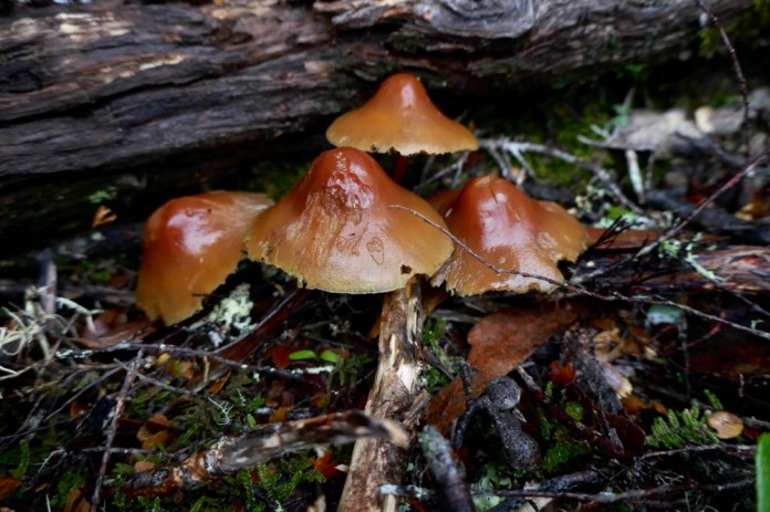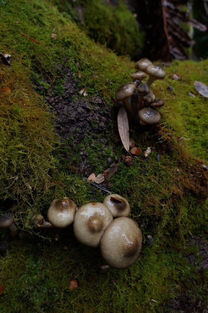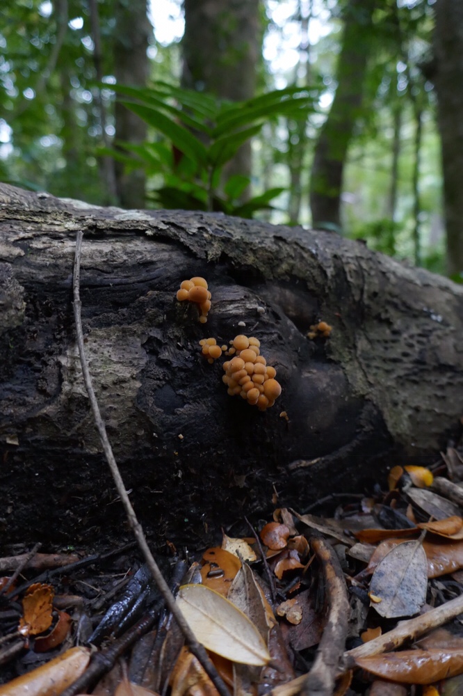 We soon reached the easier section of the descent, and enjoyed the many fungi some nestled in fallen leaves, others emerging from rotting bark and logs and a few peeking out between fern fronds. So many colours and forms.