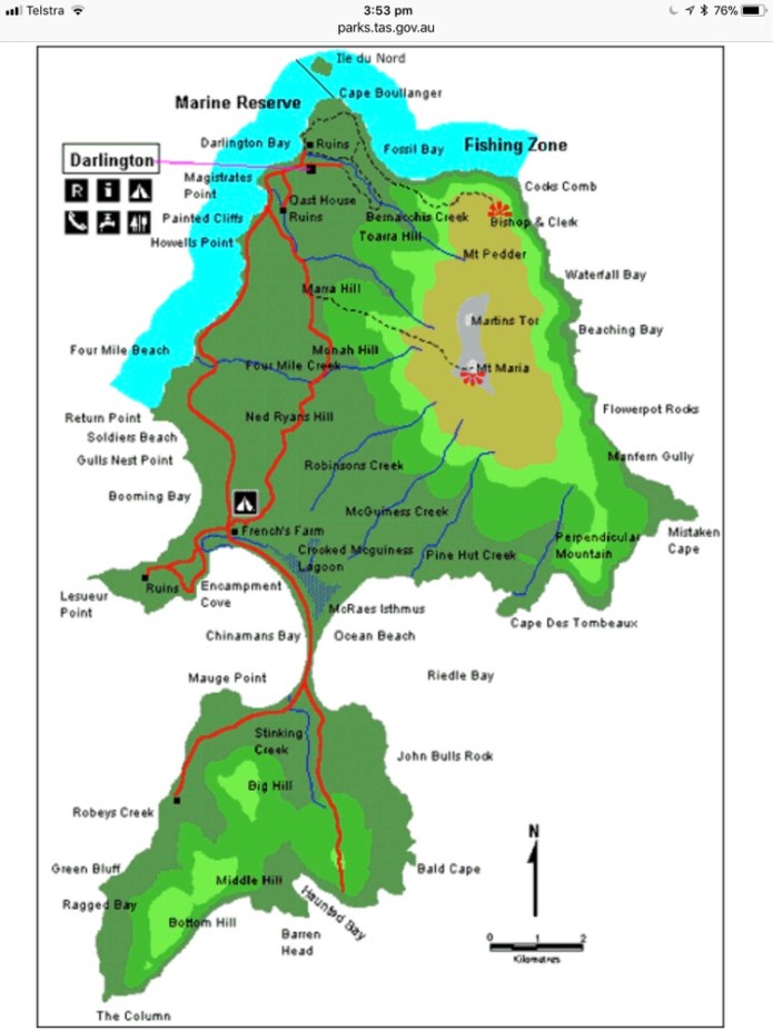 I have never been to Maria Island. I have been to Freycinet and driven along the eastern coast of Tasmania. Always It sits there, tantalising me only five kilometres from the mainland. It can be justifiably thought of as comprising two parts, two mountainous islands joined by a narrow, sandy isthmus.