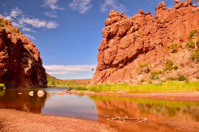 In this first week I worked with three nurses, I’d driven to Papunya on Monday morning with the clinic manager as passenger. We chatted about all sorts of things, stopping at Glen Helen for coffee. She told me about a camping trip she had done with a few friends. They drove along the Tanami Road to you-have-to-know it turn off then carried on to the old, the original Glen Helen Homestead. It’s a ruin. She obtained permission for the visit from the owners, now based at the new resort. On the way, they crossed a beautiful, wooded valley. She described how they assembled tents, and settled in for the night. Early in the morning dingos walked warily amongst the tents, emitted a few brief barks, and then vanished into the forest.