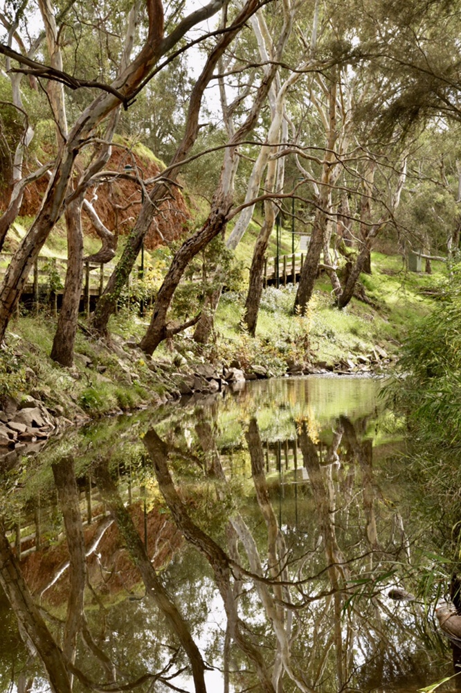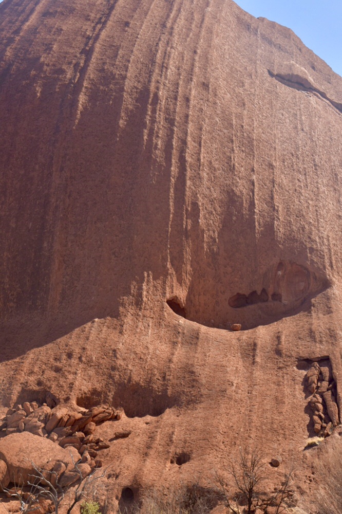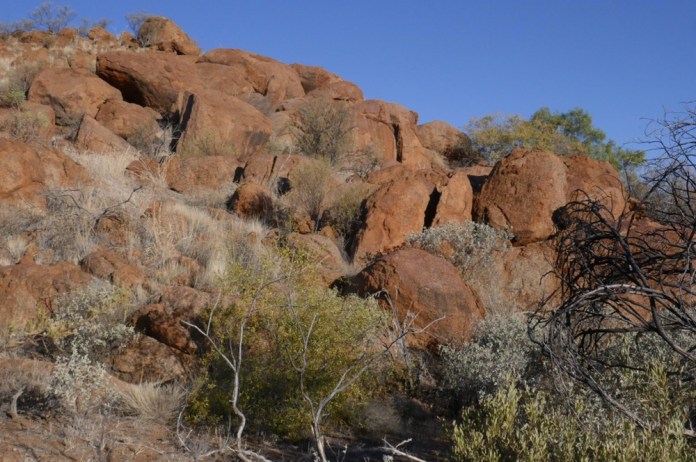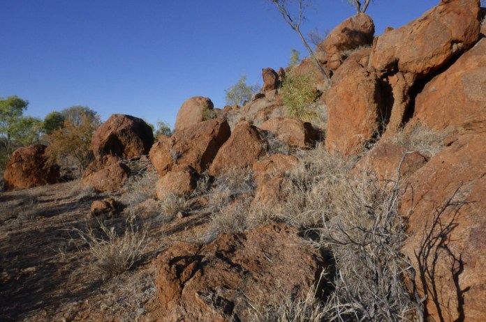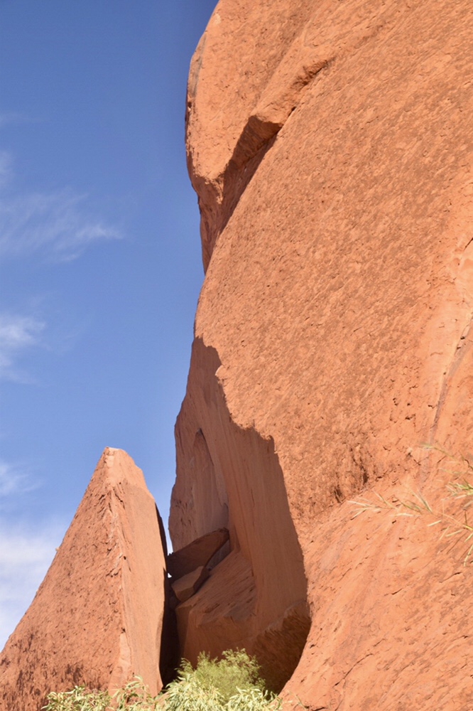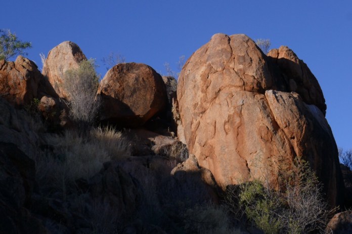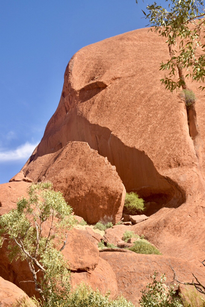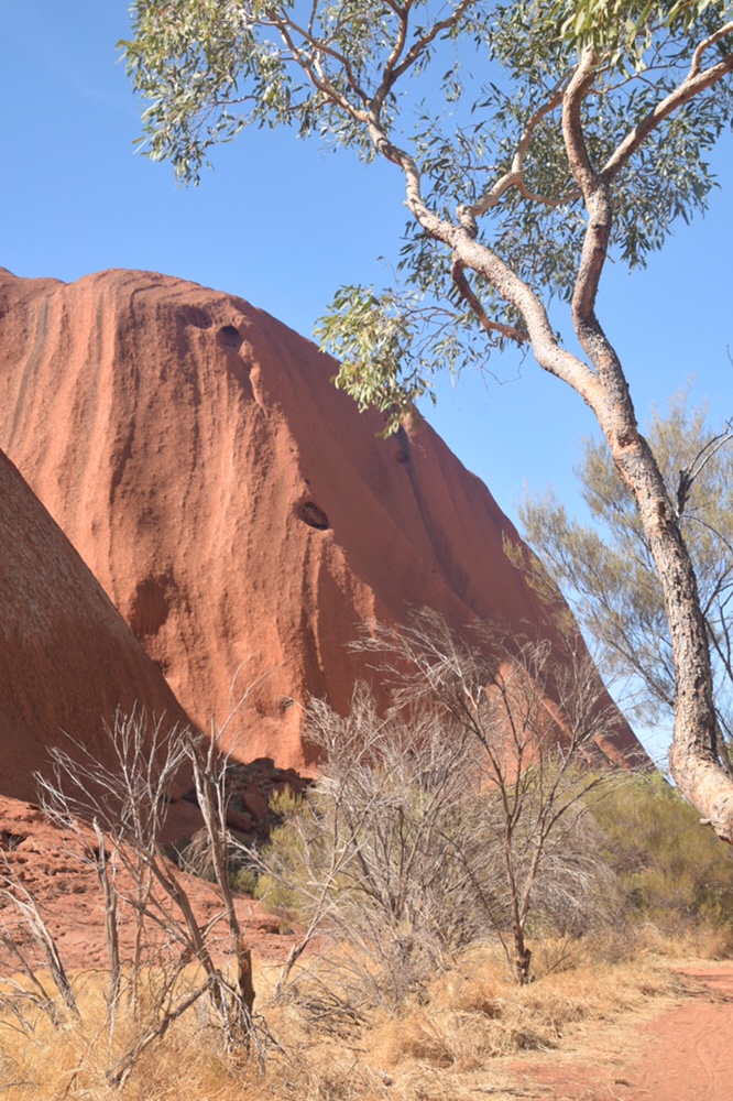 Wrigley Gorge is part of the extensive track network centred at Telegraph station. There are mountain bike tracks, walking tracks and some combined tracks including the one to Wrigleys Gorge. The wind was cool and pleasant, as we all set off. It was a mass of people at the start but the crowd soon separated out and for most of the track I was by myself with merely the susurrations of my fellow walkers ahead and behind. The land is arid and twists and turns along dry river beds, up and over rocky cliffs and finally arrives at Wrigleys Gorge. River gums nestle in a narrow valley. Most of the walkers elected to take a shuttle bus back but I had enjoyed the walk too much to do it just the once.