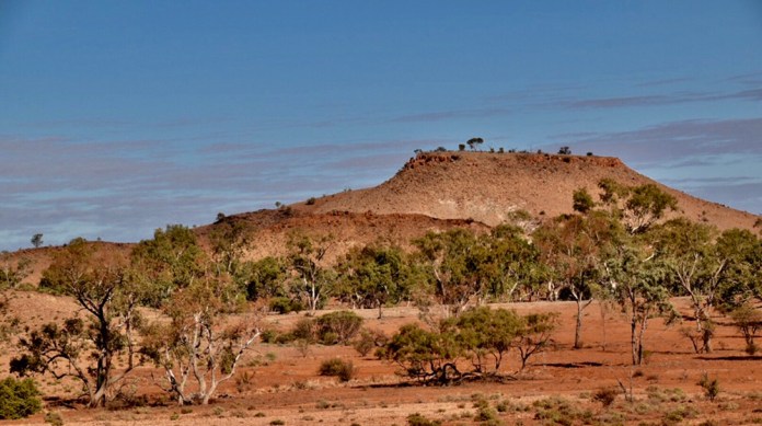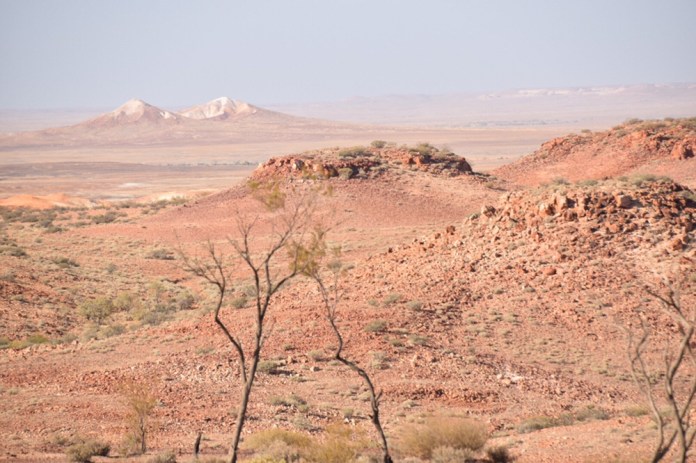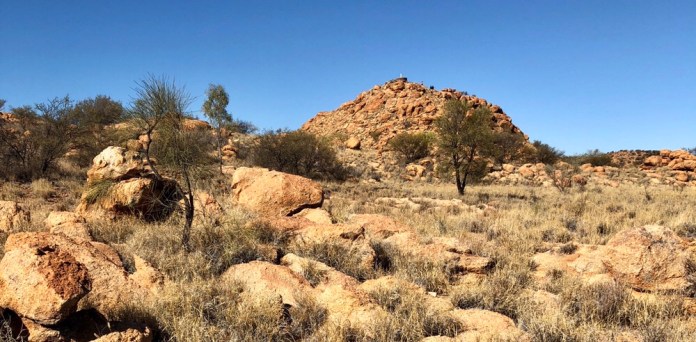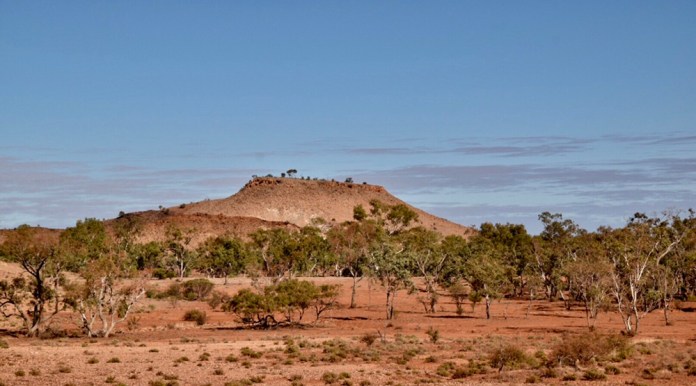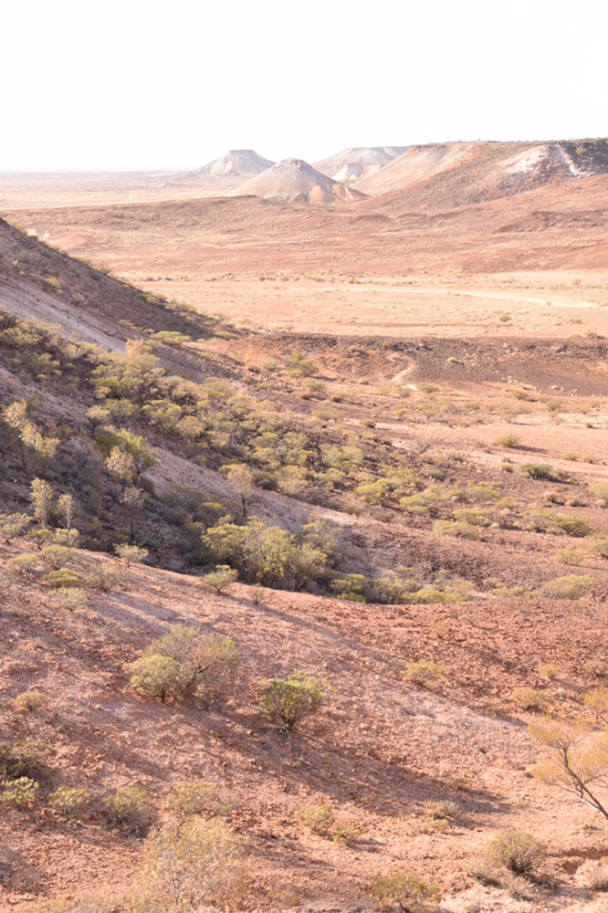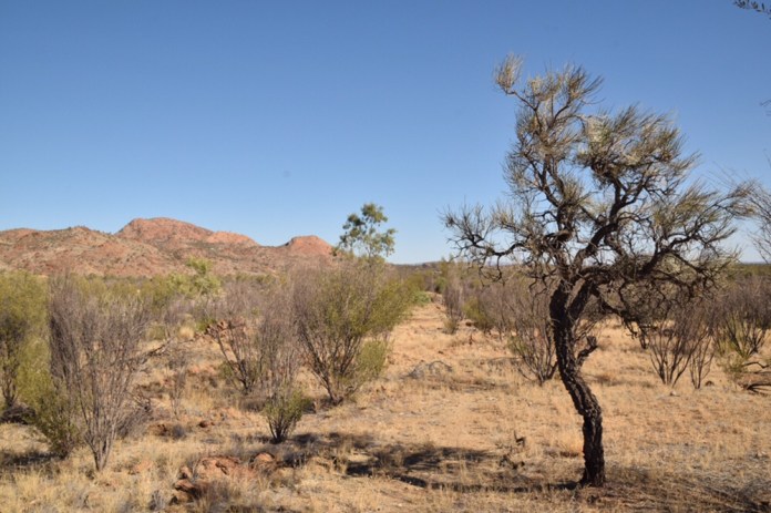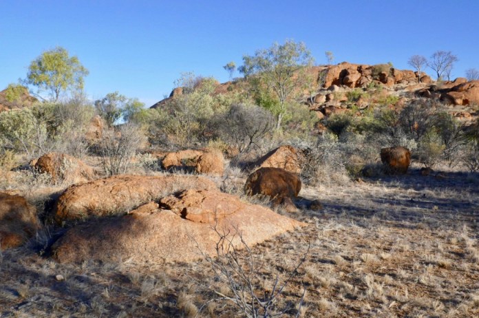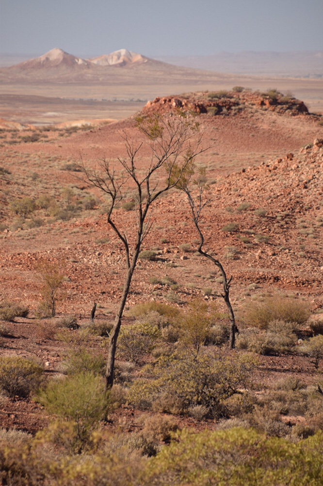 There are some fine views from the Ernest Giles track. Desert oaks, acacias, dry river beds, hills and always that crisp blue sky silhouetting the ridge lines spotted with a few trees. The rich colours, the orange, reds and splashes of white rock with a foreground of forest.
