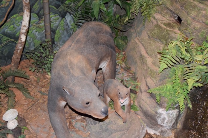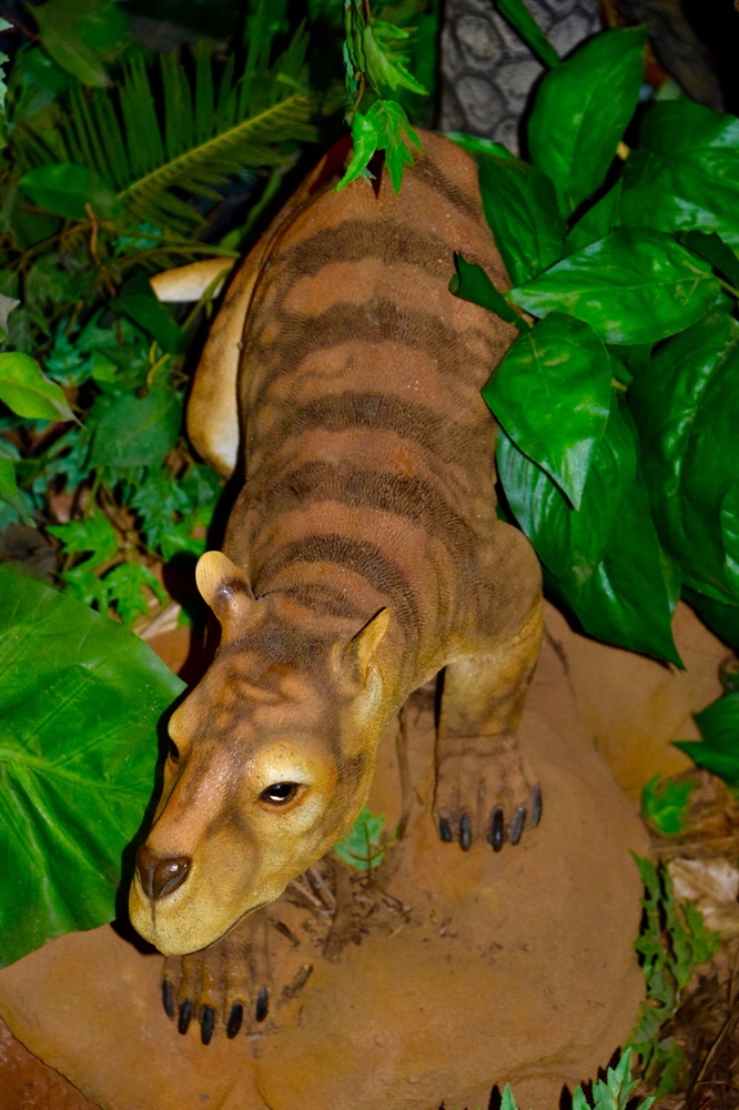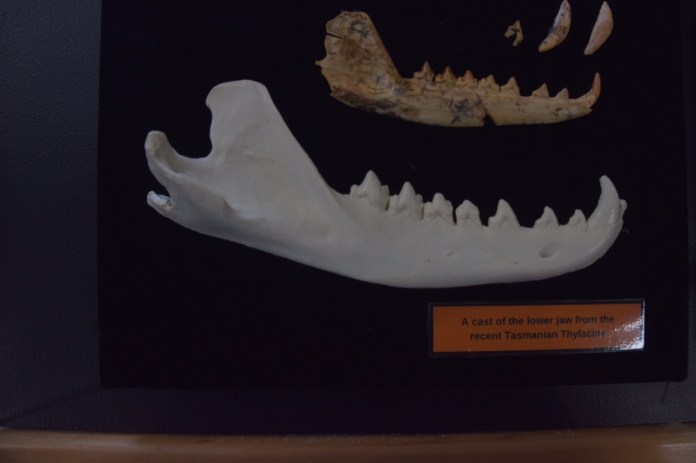 Pieta guided us through the museum, including the labs where she works. There are splendid models, life size of the unusual marsupials which lived at Riversleigh. In the Miocene which is about thirty to ten million years ago, the great inland sea of northern Australia had retreated, leaving abundant rivers, forest and a mild climate, these ancestral marsupials all thrived. Giant diprotodon, the ancestors of wombats, and the size of a hippopotamus, ate the shrubs and plants of the temperate jungle. Marsupial lions and thylacines hunted them, pursuing them, hiding in the trees and foliage. Baru, one of several ancient species of Miocene crocodiles, as well as other giant reptiles including pythons equal in size to the modern anaconda of South America and giant lizards like Megalenia hunted the diverse marsupial megafauna. Giant kangaroos, possums, and even a creature called a “ thingodonta” lived in the Australian Miocene. All of them exploited different food sources.