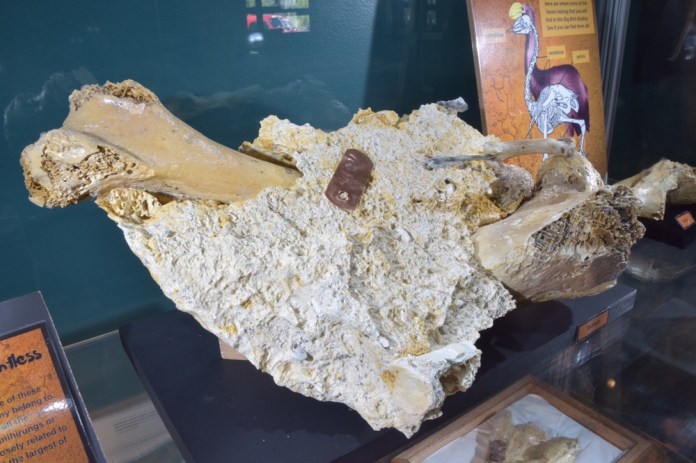 On our last weekend in Alice Springs, Jennifer and I had visited the new megafauna museum that had just opened in Todd Mall. It’s a Centre for the display and study of megafauna from Alcoota near Engewala. There are many wonderful fossils on display but my favourites are of a giant goose, that stands over two meters tall and a complete baru. A baru is an ancient crocodile that hunted in the billabongs of mid Miocene Alcoota . Alcoota and Riversleigh are of similar age but the latter has fossils from a longer period of the Miocene and extends into the Oligocene as well.. At Mt Isa, there are some fabulous fossils of ancient bird, including the “demon duck of doom”. There is the colossal beak of this ancient bird, it stood three meters tall. This is more formally called a dimorphid but I prefer the alliteration of its common name.