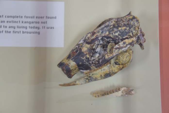 Top Tourist Park was great. We had a shady site near the entrance. The camper trailer was in shade most of the day. Our chairs snuggly placed around it. We went for dinner out on the first evening to Buffs RSL Club. We had to become temporary members. We could have been anybody or nobody. It felt a bit weird showing bits of paper when I ordered a meal. Anyway, the meal was superb. I have never had better steak. We had so much that we secreted some in alfoil to slice up for our lunch the next two days. After dinner a courtesy bus dropped us off outside the caravan park. The next day after breakfast, we drove to the information centre. A wing of the Information Centre is dedicated to the Riversleigh fossils. On our drive to Mt Isa, we passed the turn off to Riversleigh. It’s a station on the Gregory River where some of the most important Miocene fossils in Australia have been found. Soon after it’s importance was realised, this laboratory to process the fossils was established in Mt Isa. Scientists not only supervised and participated in the dig itself but also helped with the processing. Teams of technicians worked on the fossils. Then suddenly the money dried up, and the laboratory was closed. For eight years, the forgotten fossils laid in their rocks on shelves, microscopes gathered dust and any fossils recovered at the dig site were shipped straight to Sydney. Mt Isa had lost out. Two enterprising locals in 2008 convinced the local council the centre should be reopened. These two people process the fossils from Riversleigh. They dissolve the limestone rock in which the fossils are imbedded using baths of 2% vinegar. Of course this takes time, but finally the bones emerge out from the dissolving stone. As they do they are coated with plastic dissolved in acetone. The acetone evaporates leaving a residue, a protective coating of plastic. These two people are not trained formally at all to do this type of work, but their fossils have been used by universities around the world. These scientists borrow the fossils for years or months, but they have to be returned to the lab in Mt Isa. Here they are displayed for people like me to study, to amaze and to enjoy.