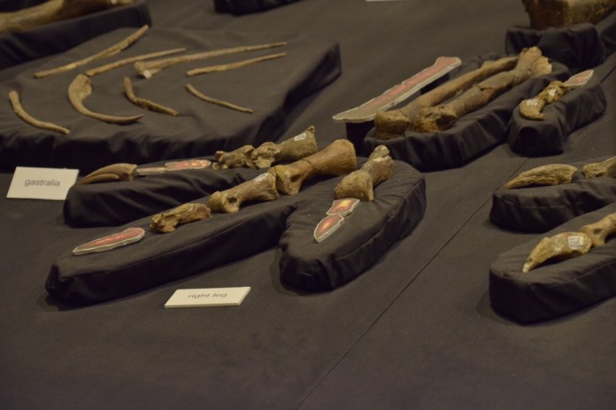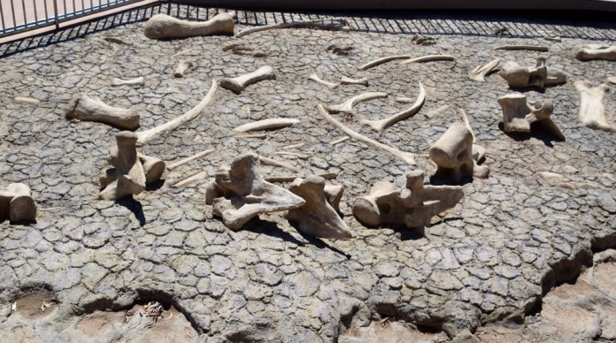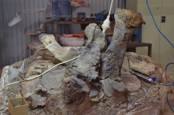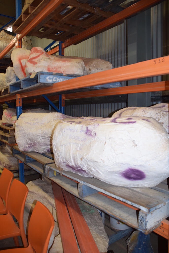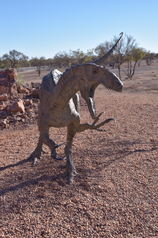 The next day we packed up the trailer, and began our drive to Longreach. This section was only 180 kilometres so we had ample opportunity to spend some time at Dinosaur Canyon. It’s not like Jurassic Park, no accountants were eaten by theropods, so it was much better. We opted for the Ultimate pass. This pass includes, a visit to the processing laboratory, a guided visit to the collection display centre and an outdoor walk to visit LifeSize metal casts of the creatures discovered here in Winton and in Queensland. From the visitor centre there is a short walk to the laboratory. Before I tell you about the laboratory, I had better give you some background. A local grazier, David Elliot, discovered a fossil, well he more or less tripped over it, it was a femur of a sauropod. It’s about two meters long. He spoke with the Queensland museums scientists who were very sceptical. It’s been the conventional understanding amongst many scientists in Australia, that we have a poor dinosaur fossil record due to our geology. Elliot took a contrary view, as a farmer he is very aware of soil and how it behaves. The soil over a vast area of Queensland is called black soil. When wet it churns materials up from deeper layers including the sedimentary rock, laid down in the Cretaceous and containing fossil dinosaurs. His theory is that many of the fossils are of older, or sick animals that died, trapped and unable to extricate themselves from the thick mud of billabongs common in that time in Australia’s history. The billabongs were surrounded by vast forests of conifers, angiosperms ( the earliest of flowering plants) and cycads. Plant eaters like the sauropods ( Diamantinasauras Matildae) and hadrosaurs ( muttabasaurus ) were the prey of meat eating dinosaurs. The pack hunting theropods like Australovenator Wintonensis also named ‘Banjo’ are also located in these fossil deposits. Fossils have been located over a wide area, and it looks like this area of Queensland will be one if the richest fossils site for Cretaceous dinosaurs in the world.