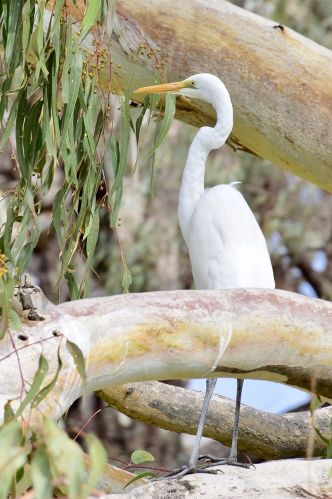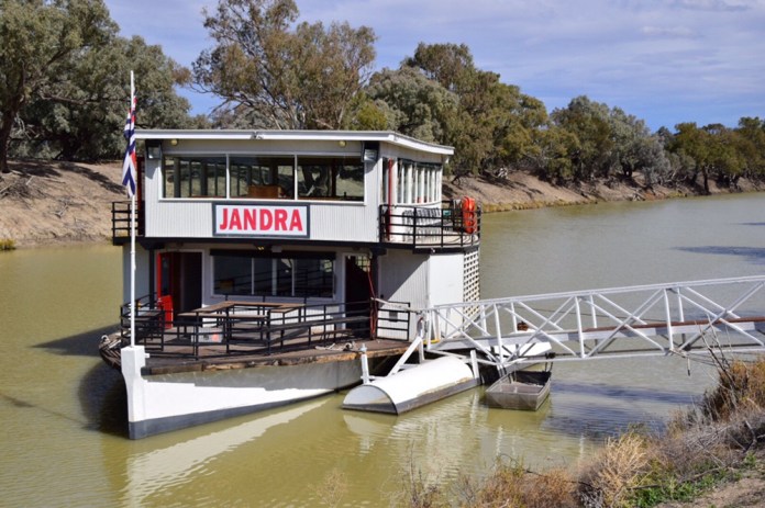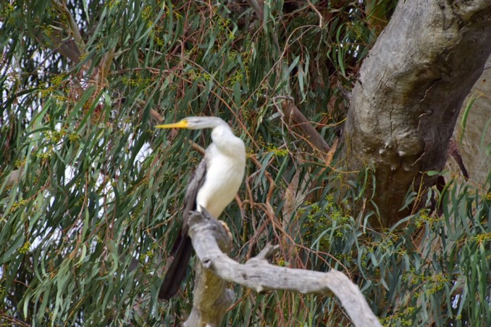 We drove back in time to board the PV Jandra which is a Paddle vessel not steamer. It is squarely based on the original Jandra from extant contemporary designs and photos. The trip began at 2pm and goes up stream, under the old bridge with a it’s central section that can be raised. This was not necessary today but when water ran high, it was very necessary indeed. The old paddle steamers of which there were 250 all up plying the Murray-Darling system transported cargos over vast distances. In flood years, paddle steamers would go up 180 Miles Overland, right to the doors of some remote stations. The catchment for the Darling goes from NSW and well into Queensland. The current Jandra was built in 2000 and is diesel-electric powered paddle steamer. Like its steam forbears, it’s very manoeuvrable but nothing like as fast. The last paddle steamer pulled out of Bourke in 1931. Railways killed the paddle steamers. We had a very relaxing cruise soaking up the stories of these amazing vessels and taking photographs of birds, bridges and the ubiquitous grey barked, squat, coolabah trees situated just beyond the river banks. The metal frame of one old paddle steamer remains on the golf course. It was marooned behind the levee banks before it could reach the main channel. The captain lived in the beached vessel for many years.
