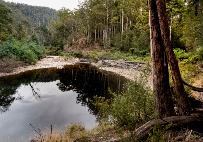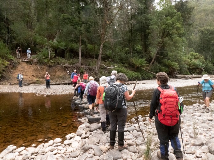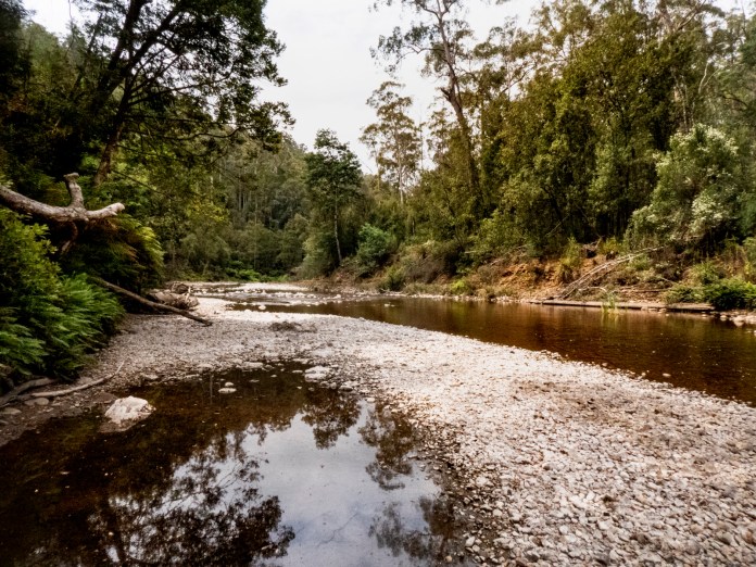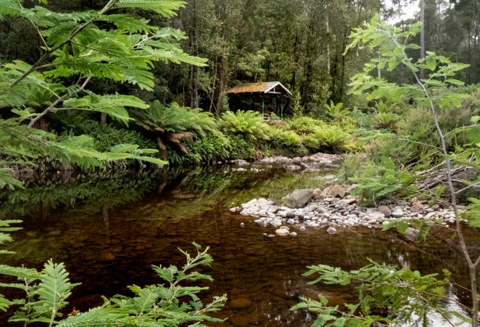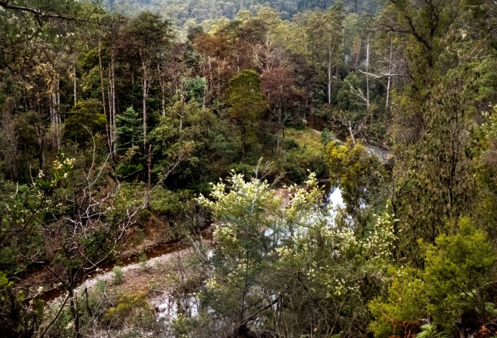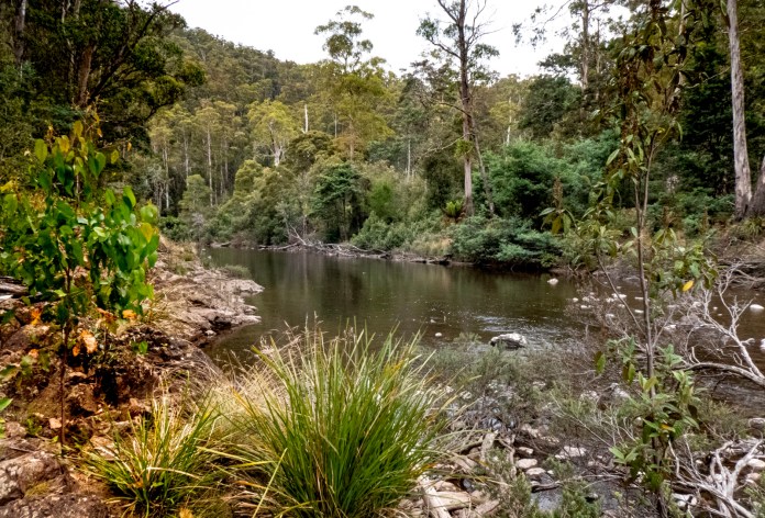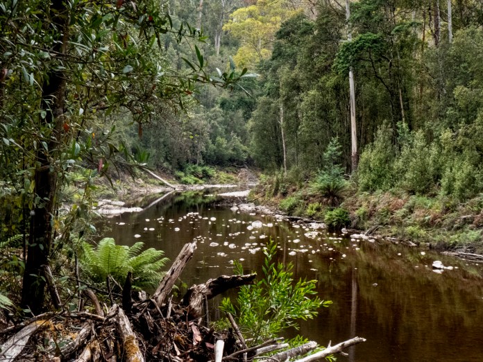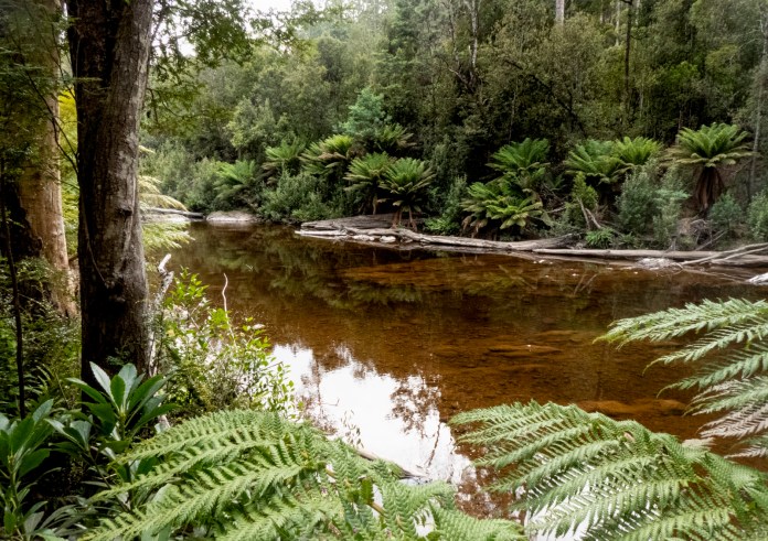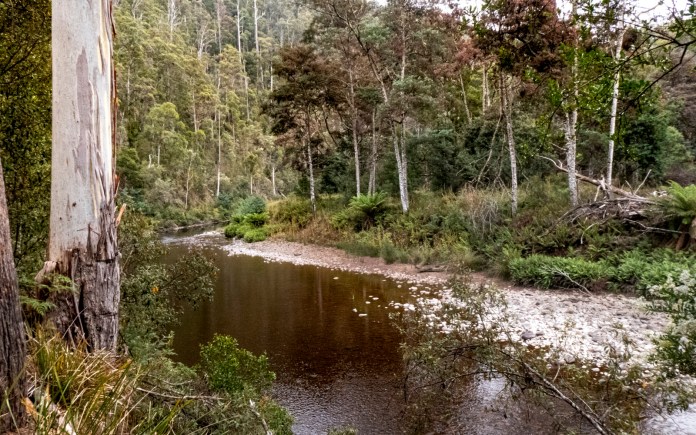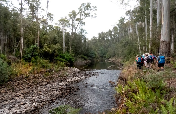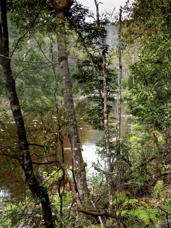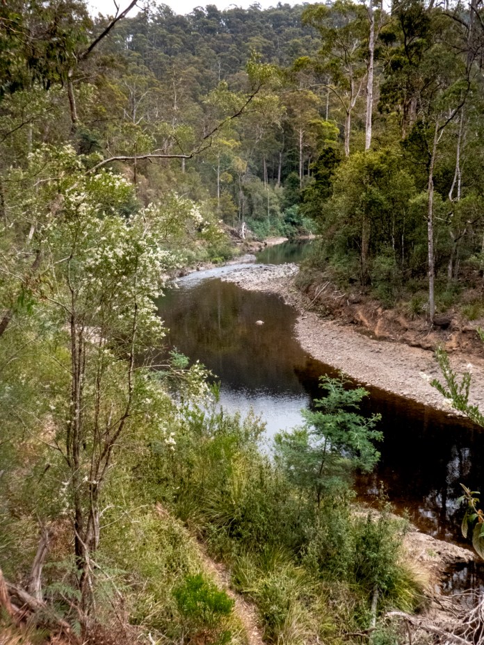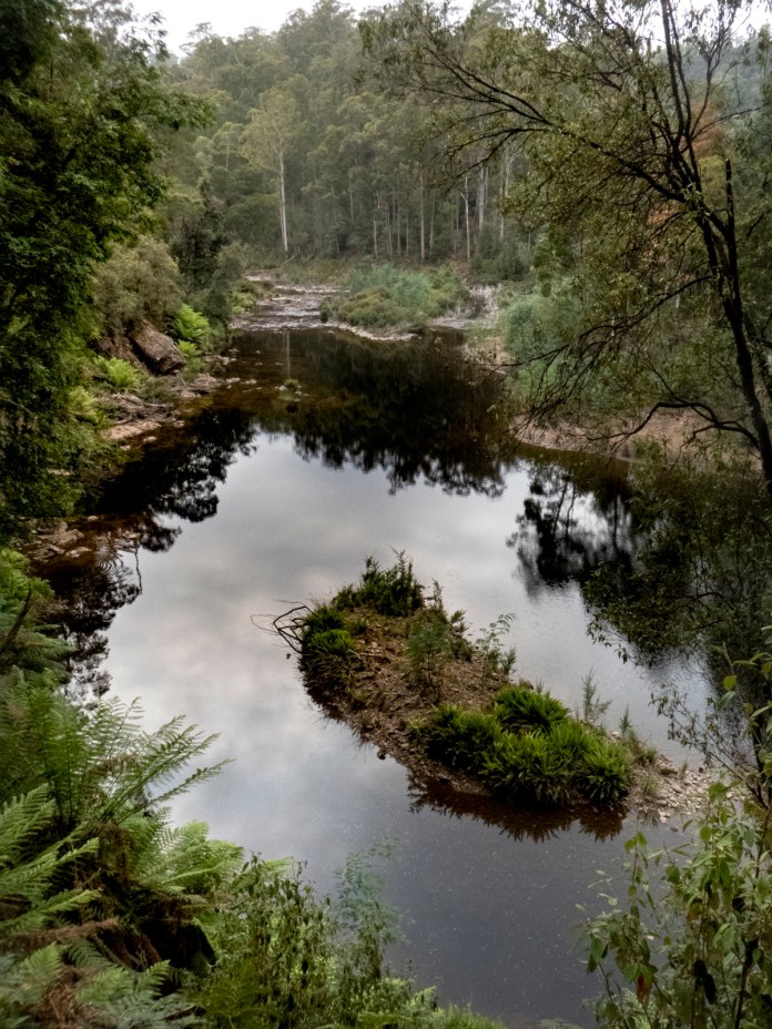 Every step provided views of this gentle – now – river as it wound its way to the Forth valley and Bass Strait far beyond. Cascades, islands and stretches of placid flowing water charmed and delighted all of us as it curved in and out of sight.
