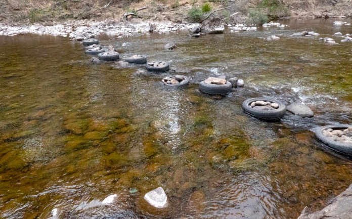 We had lunch at a large, grassy picnic area. It was all very leisurely until we followed what proved to a be a labyrinth of tracks back to the start. We had crossed the river before lunch and then crossed it again further downstream to rejoin our initial track. The crossings were low stress as the stones were corralled in tyres providing good footing.