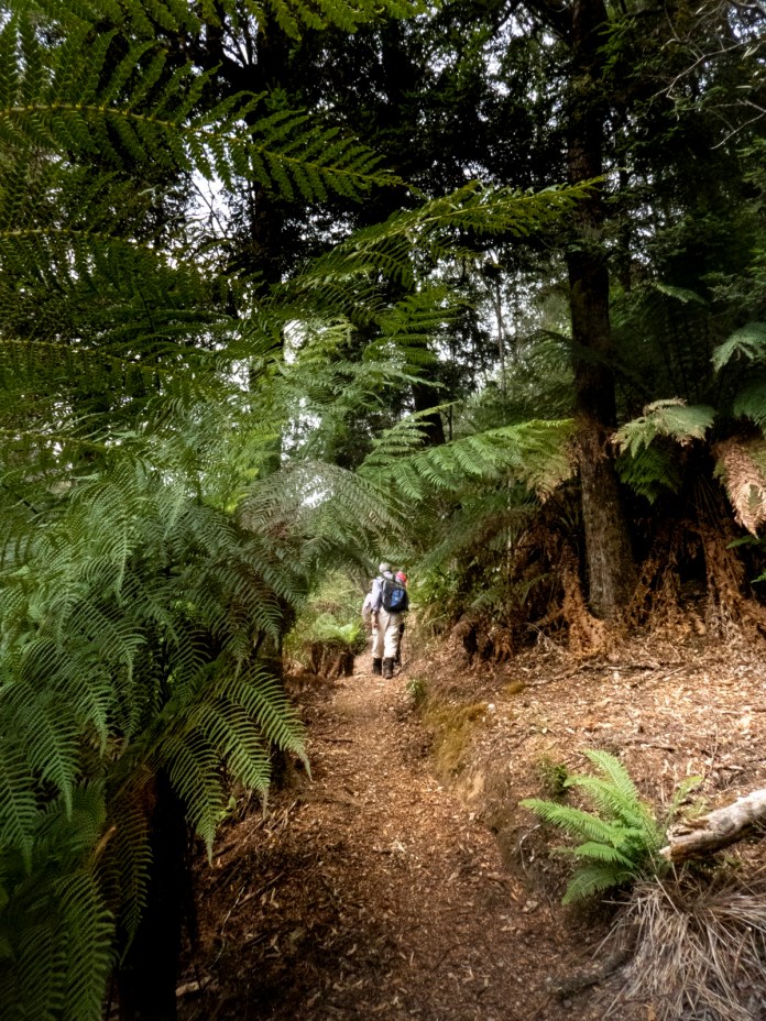 The flora is amazingly rich with Waratah, pepper berries, laurel, cheese berry, and dogwood lining the track and filling the vistas in every photo. Magnificent tree ferns hugged the shelter provided beneath firsts of maple beech and tall mountain ash.