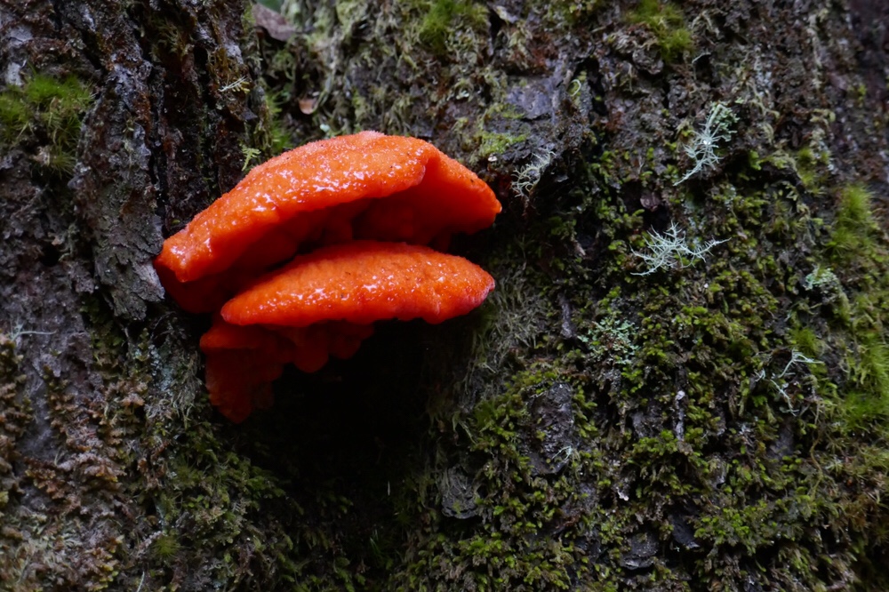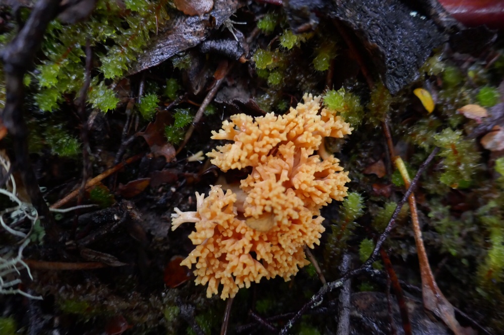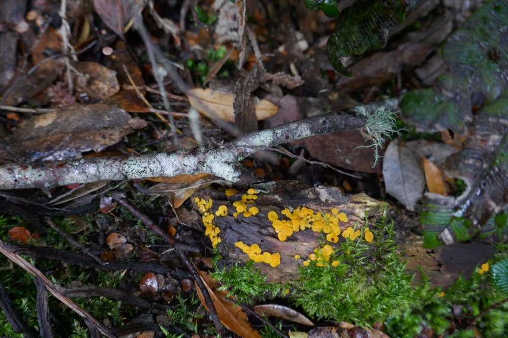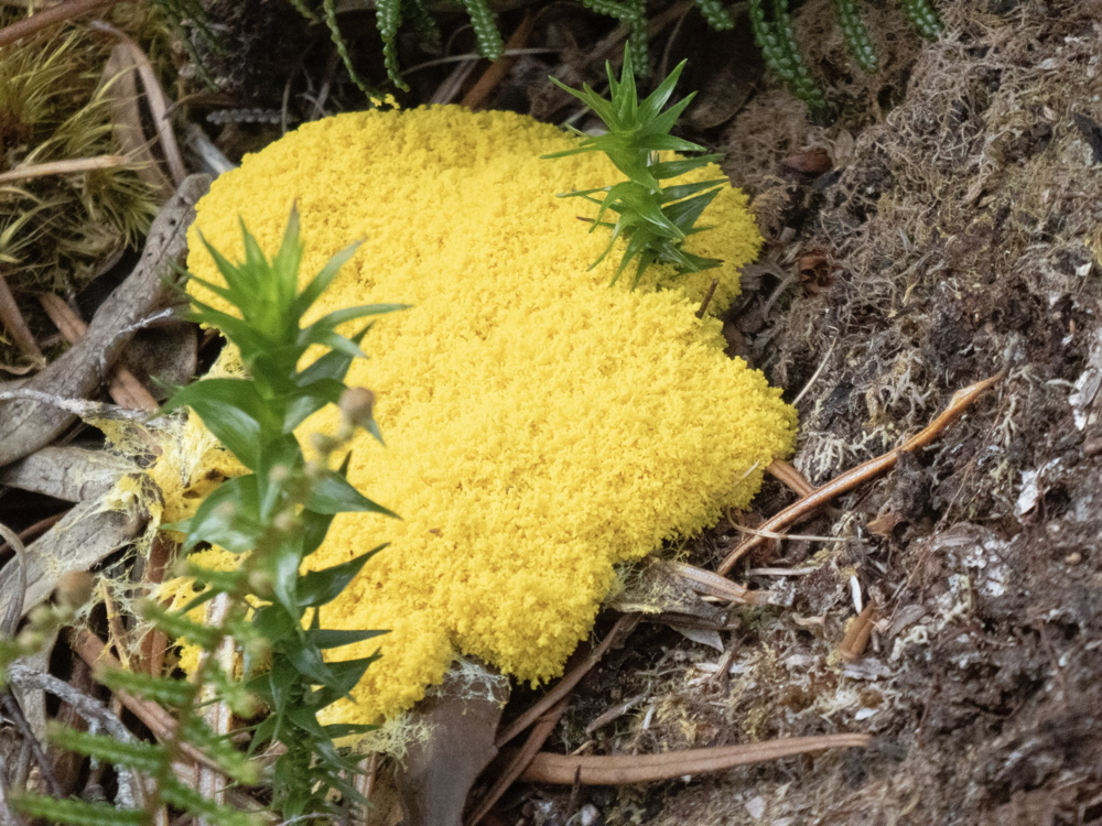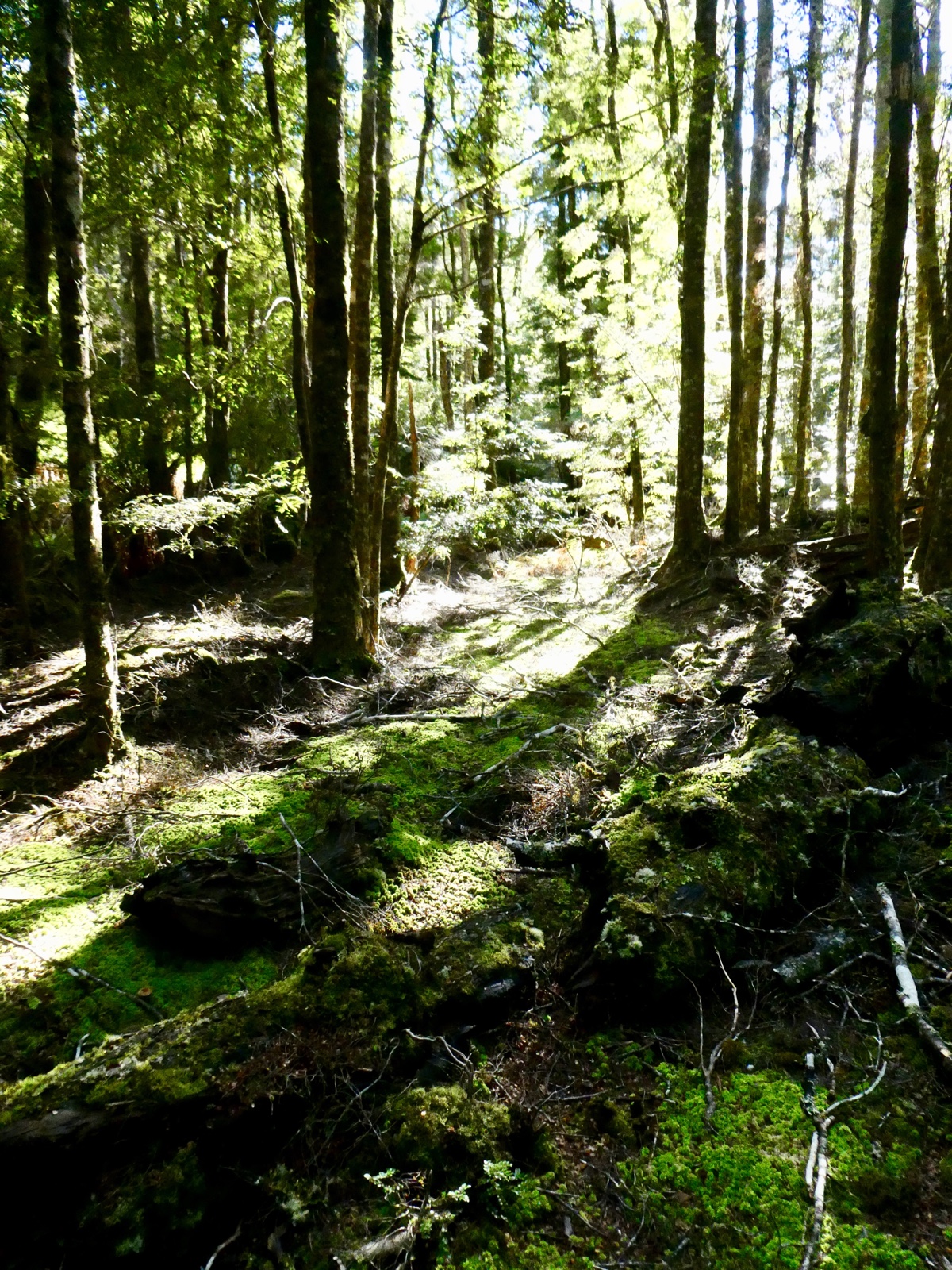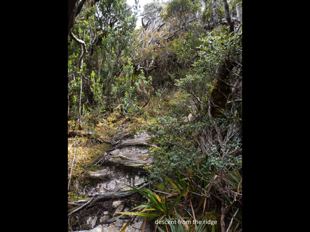 I hope I have made clear how totally demanding the walk is but what I have not emphasized enough is how truly beautiful and biologically amazing the flora is. Over the last two hours I had travelled in alpine flora, then subalpine trees and flowers; wandered into fern glades, littered with glistening moist moss, slime moulds hunting: then entered a dark gloomy rainforest at the bottom of the Ironbounds. If you know New Zealand, this single day is like a Heaphy track in splendid miniature.