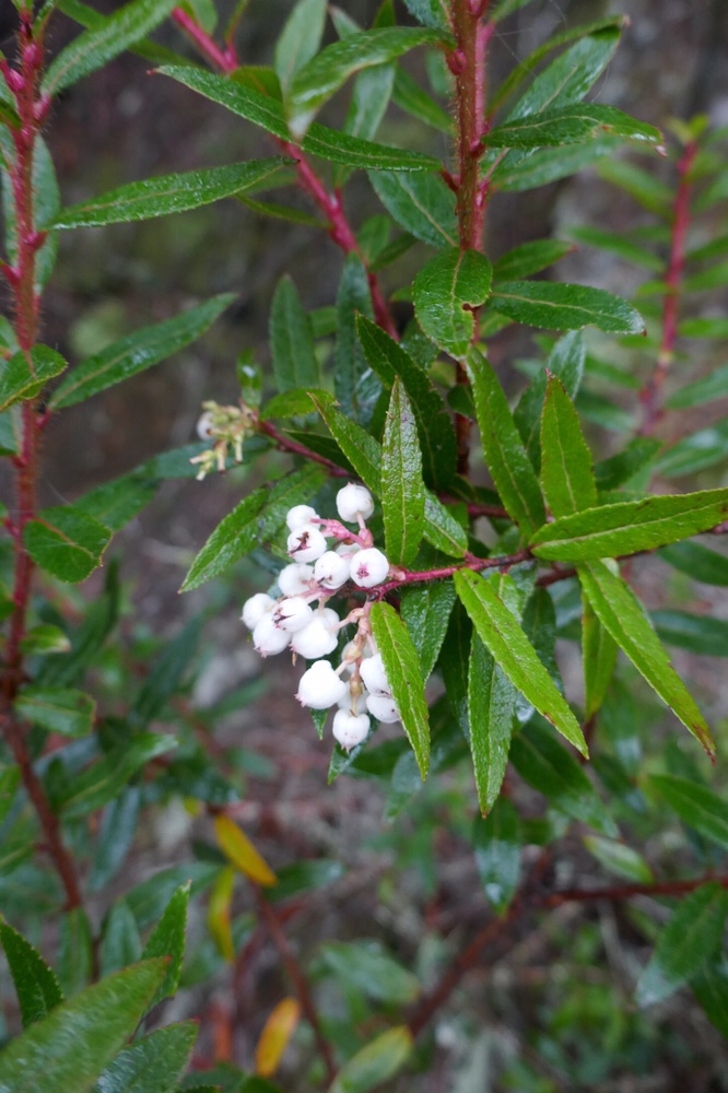 We left the campsite at 7:50 am and immediately entered forest and began a 5 kilometre climb up a rocky track of which the first two were very steep. On the way up, the track would dip creating hollows where water and mud would collect, creating some very boggy track. These bogs are not only deep but wide as well and it can be challenging to skirt them without damaging the track even further. I think that in these difficult sections, there should be track work to not only ease walker access but help prevent erosion. The track modifications need to be selective, targeting stretches of track where walkers are causing damage. On the sections of the walk with boardwalk or hardened surface, plants and flowers can be found right beside the track while in the muddy boggy sections, the churn of 1500 (per annum) walkers prevent anything at all from growing there.