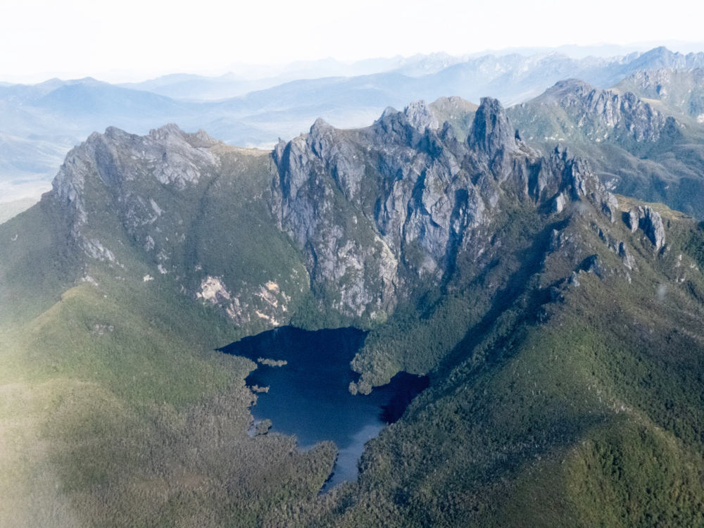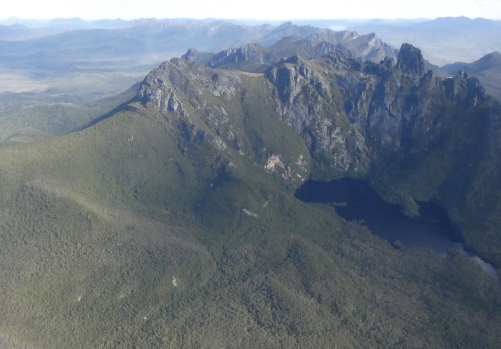 In the late morning of the 27th of December, we arrived in aerial convoy into Melaleuca. Each plane carried four of our party as well as our gear. The flight can be described as fantastic, with almost clear skies, minimal wind and magnificent scenery over which to fly. The blue of the sky punctuated by scatterings of white fluffy clouds and distant views only vanishing into haze hundreds of kilometres away. I could see Cradle Mountain hovering on the horizon far to the north. There were the Western Arthurs rising into the air; ranges of massive rugged mountains some with lakes, blue, still and poised between pillars of stone.