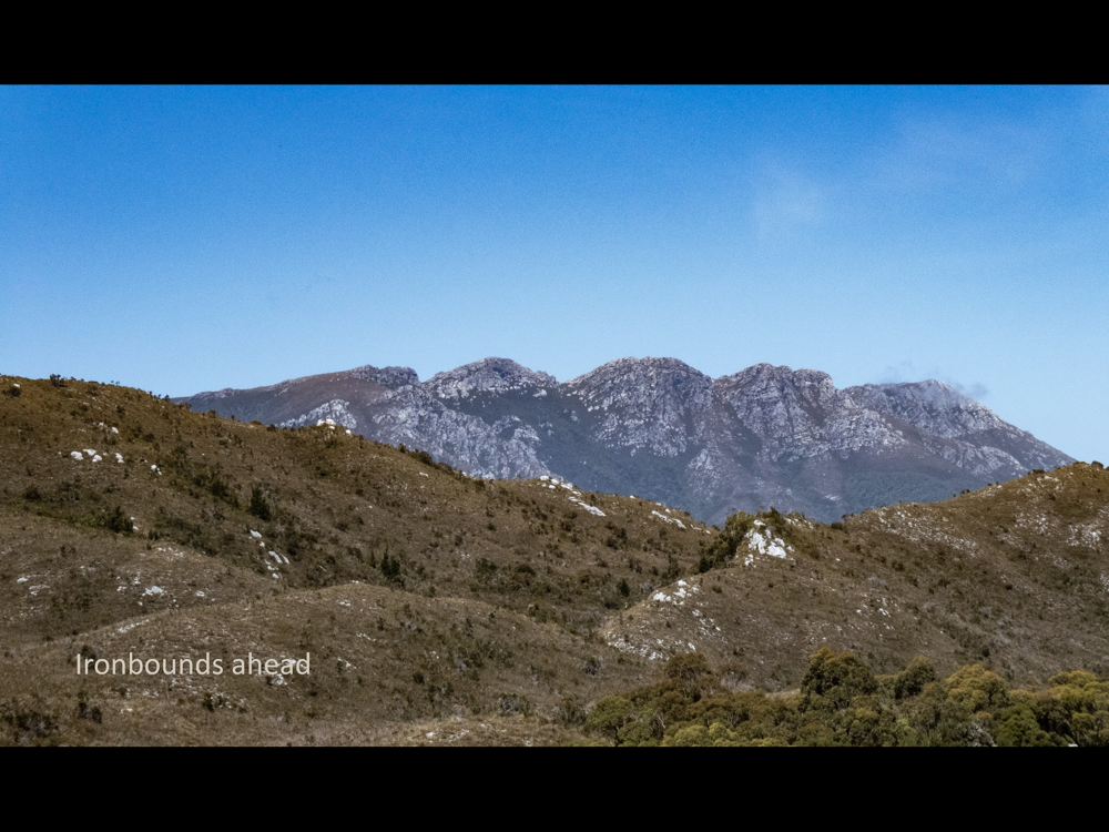 Nom gathered us together after dinner to tell us about the next day, the walk up and over the Ironbounds; up and out of sleeping bags, then breakfast at 4am. The hike is 12 kilometres but involves 1 kilometre up and 1 kilometre down and 1 kilometre across the top. Did I imply it’s hard? Well it certainly is, and all the more for lugging up 23kg of pack. Alan, another walker, carried an item for me that saved me a few kilograms. This was very much appreciated. If I can pre-empt my overall impression of the Ironbounds; it is the hardest walk and the most beautiful walk I have ever done. This description can be justly applied to the entire South West walk.