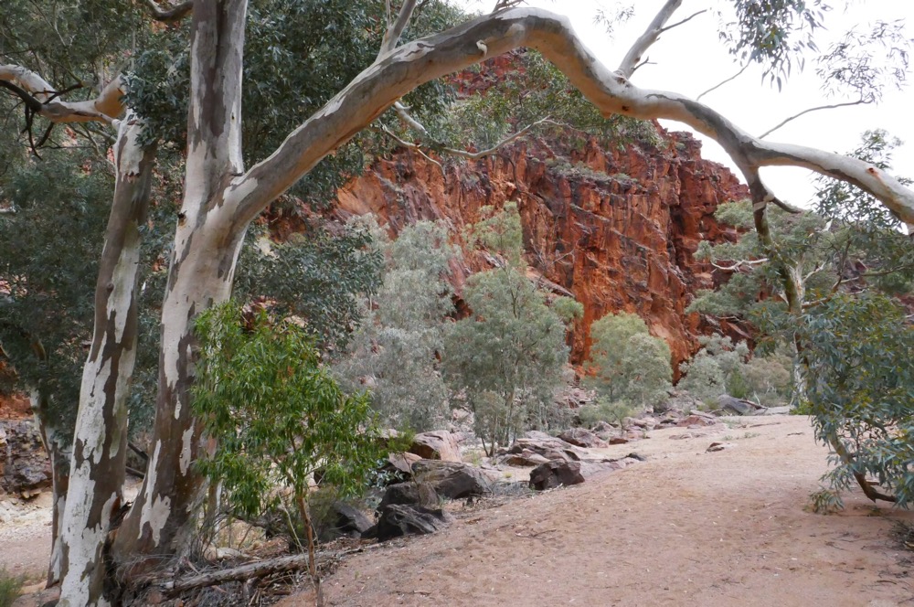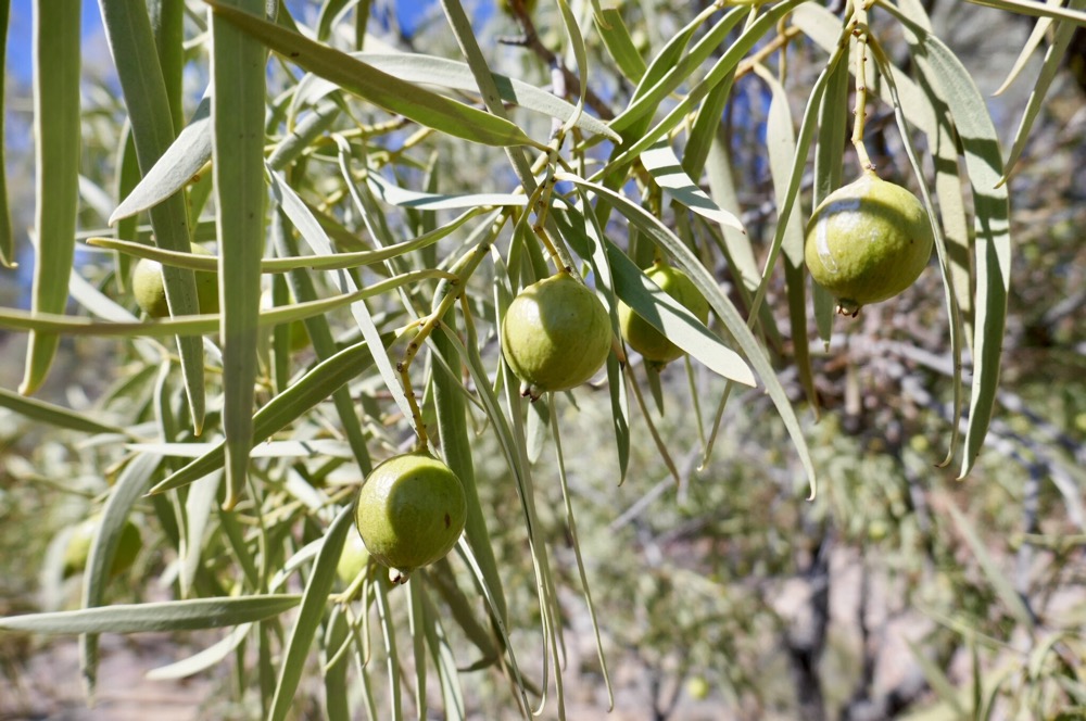 We are seriously on our way home. We left Arkaroola on Sunday morning and drove to Hawker. On the way we drove through the Flinders Ranges and Wilpena. The road is bitumen through the southern Flinders so travel is a lot faster and a lot less dusty. At the end of the dirt roads is the small town of Blinman. Blinman was the site of a major copper mine and even today there are mine tours available. We did not have the time for a tour but did have time to enjoy a famous Blinman meat pie. They are just huge and taste great. I followed it up with a quandong tart – takes like a rhubarb and pear mixed together. Now quandongs are not only very tasty and very interesting. The quandong tree is a root parasite. It uses the nutrients directly from the roots of another tree to grow. Once the quandong is big enough it can go out on its own. We saw plenty of quandongs at Arkaroola.