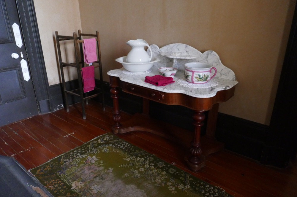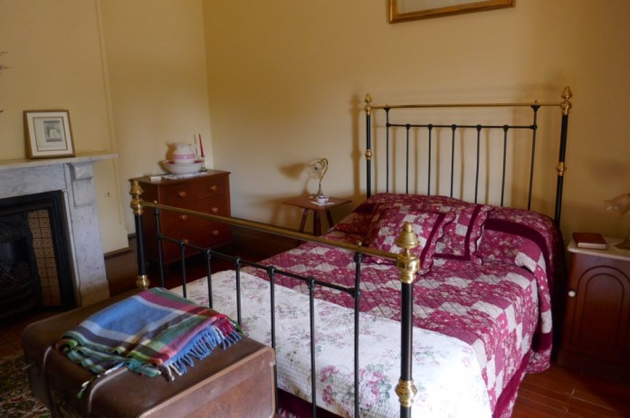 Increasing numbers of cyclists and walkers, some enthusiastic, some reluctantly in tow, and all coming from Darlington. They all passed us as we approached the township. We passed on isolated house where a lady had managed the telegraph for many years in the 1940s. She would have enjoyed the view of Darlington Harbour. We walked past massive old trees first planed in the convict era. Then walked the short distance to the Bernacci house. This is not the original residence of Diego Bernacci, which is now a ruin on the hill above Darlington. Nonetheless, our accommodation is a finely restored and comfortable residence that exudes, gentlemanly relaxed living of the late nineteenth century. Opulent sofas, old maps of Tasmania, even some old convict manacles can be studied in their glass case on the piano. In a few words, A very nice place to stay.