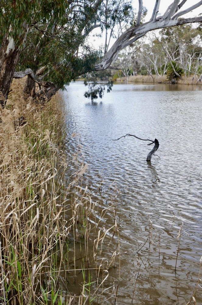 We have arrived safely at the kids place in Melbourne. We spent last night at Dimboola. What A terrific choice it was! We decided to stay in a unit rather than camp out as a wet camper canvas would never dry out in Tasmania. The unit was small but more than adequate. As Dimboola is two kilometres off the highway, its quiet with only the croaking of amorous bullfrogs echoing over the camp ground. The Wimmera River is beside the park, and so it’s only a short walk to enjoy some attractive scenery.