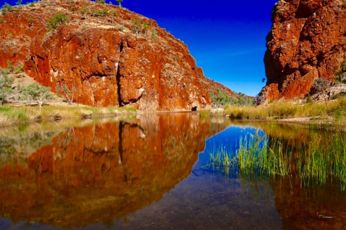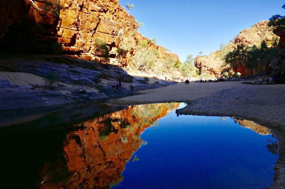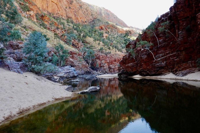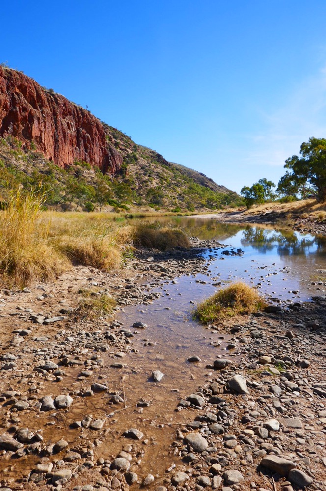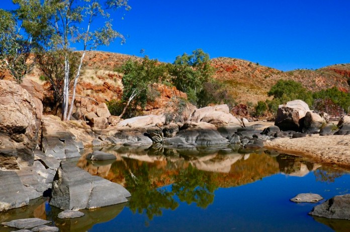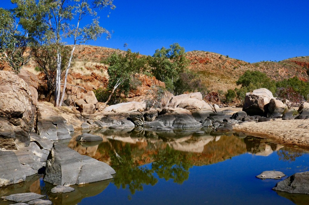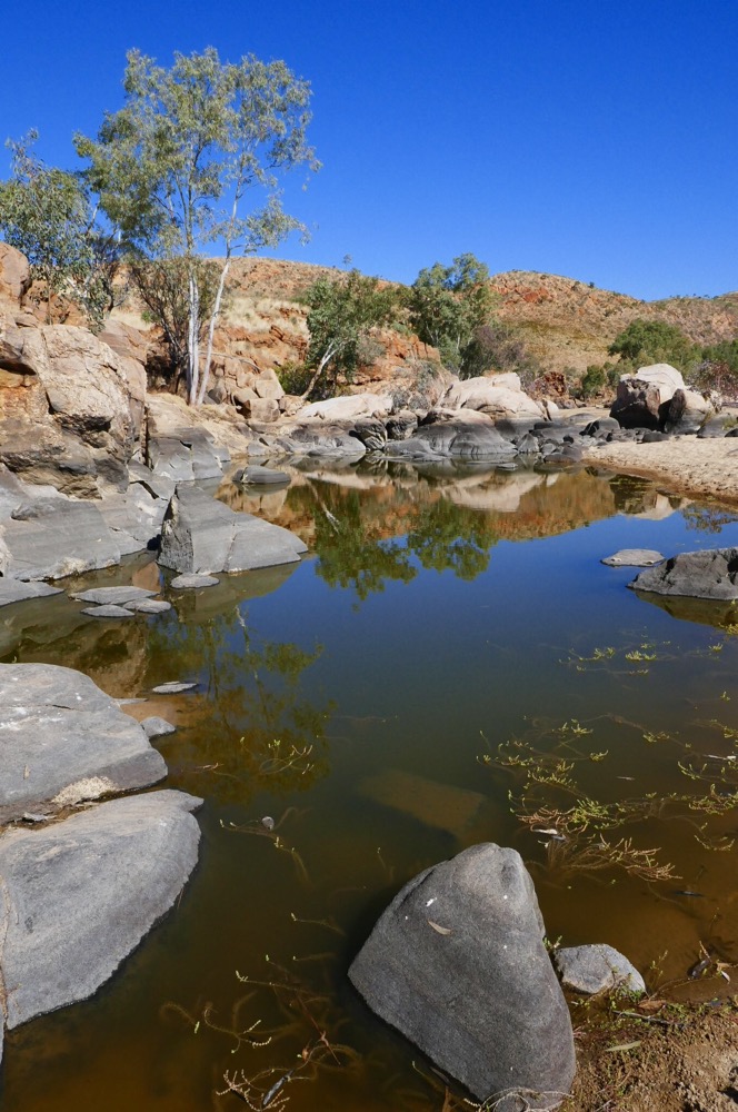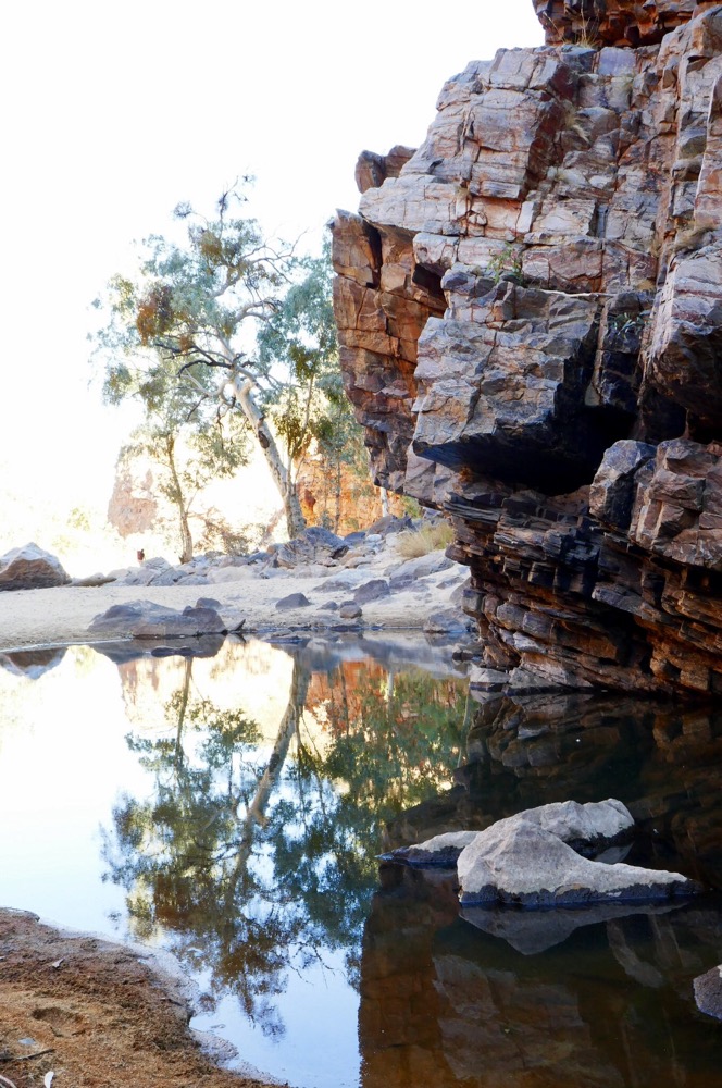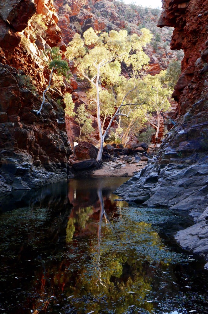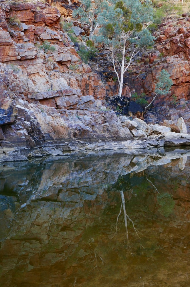 Water still remained from those long ago floods, cool and inviting pools, reflecting the red gums and ghost gums; a all peaceful symmetry of form and colour.