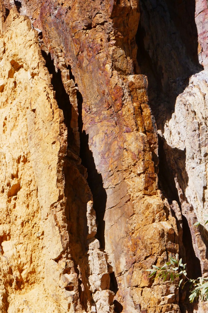 Finally we entered the gorge itself. This place is beautiful, I cannot find words to express it meaningfully. Here are rich colours of the orange quartzite cliffs, soft cool shadows lying over jumbled stone and water, and the many hues from purple to grey streaking the very substance of the boulders we all scramble across. Herons careen in the air calling as they fly in the narrow airspace of the gorge. Their voices loud and clear, but almost alien in this ancient landscape. The rock pools are large and plentiful, providing too ample an opportunity for photography. The vivid clarity of the reflections, then tones blending in any subtle movement of the water. A very special place.