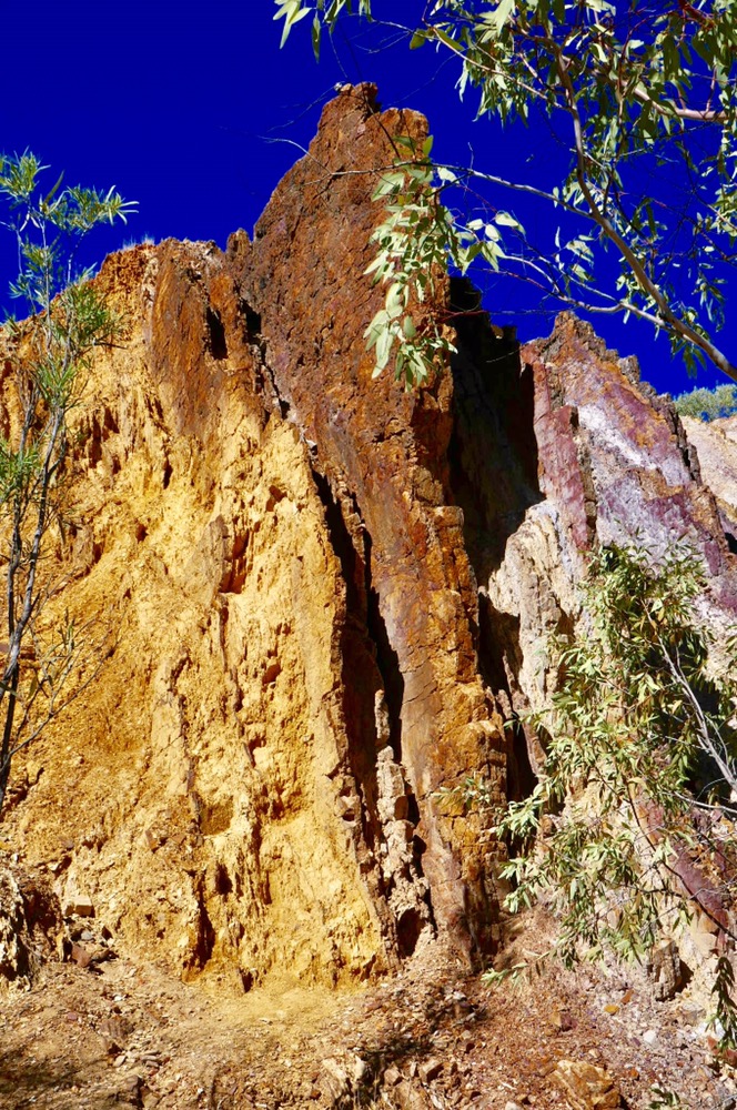 We drove back to Alice, then took the Ross Highway to Trephina Gorge. This was the item dropped from our tour with a Mark. It actually deserves more than one day. It’s physically very beautiful, it’s quiet, it’s got splendid spacious camping areas, and the geology is truly fascinating. Where we camped there us a tap, and birds come to visit. Pied Butcher birds, honey eaters to name just two.