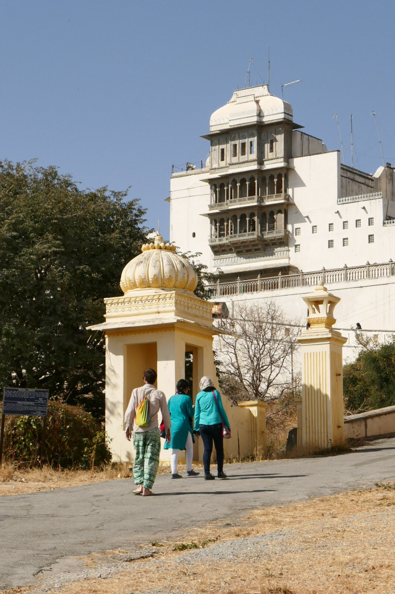After breakfast, we descended the narrow stairwell, and went back to the hotel. We met Anthony, he is French speaking Canadian and he wanted to come with us on our walk this morning. In particular we wanted to go to the Monsoon Palace that hovers above Udaipur like a star in the evening sky. You cannot go in till 10 am so we walked around the lakes, and photographed the scenery and people. There are people everywhere, mostly just busy with living; enjoying the morning, washing themselves in the lake as they stood off a ghat, setting up their shops and of course walking and driving through the city streets.